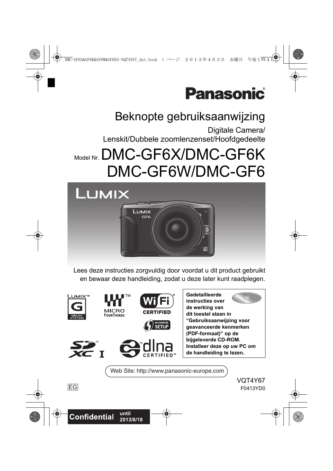 Lees deze instructies zorgvuldig door voordat u dit product gebruikt en bewaar deze handleiding, zodat u deze later kunt raadplegen. Gedetailleerde instructies over de werking van dit toestel staan in “Gebruiksaanwijzing voor geavanceerde kenmerken (PDF-formaat)” op de bijgeleverde CD-ROM. Installeer deze op uw PC om de handleiding te lezen. Web Site: http://www.panasonic-europe.com VQT4Y67