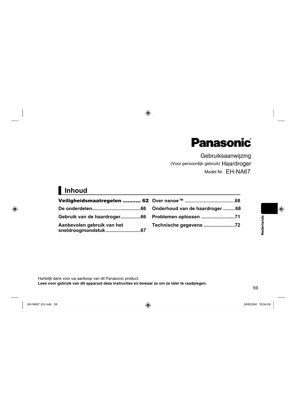 EHNA67 - Föhn PANASONIC - Gratis gebruiksaanwijzing en handleiding