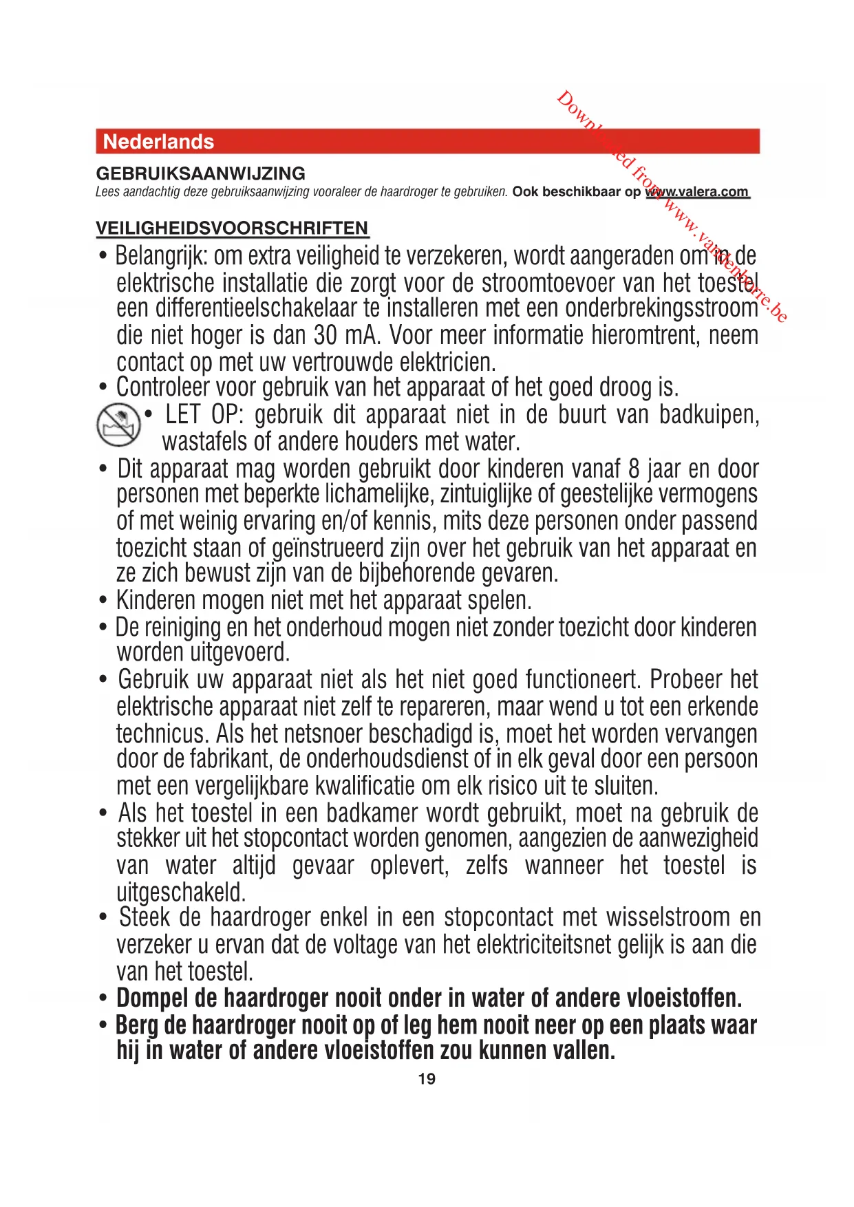 Trek altijd de stekker uit het stopcontact vooraleer u de haardroger reinigt. Maak het apparaat schoon met een met water bevochtigde doek. Maar dompel de haardroger nooit onder in water of andere vloeistoffen! Bescherm uw haardroger tegen stof. Garantie Valera biedt volgende garantievoorwaarden: