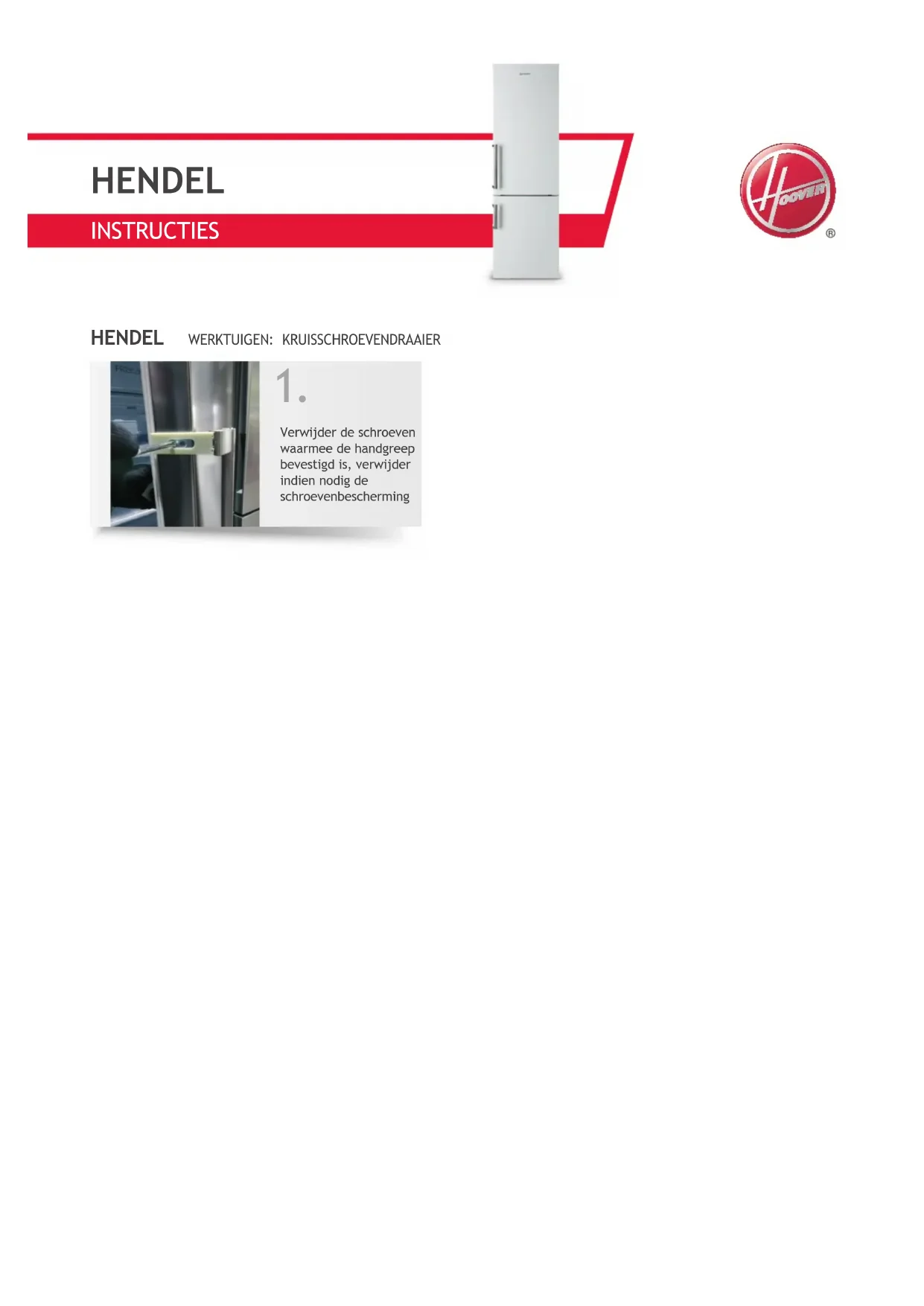 HENDEL WERKTUIGEN: KRUISSCHROEVENDRAAIER HENDELINSTRUCTIES Open de deur Trek de pakking vanuit de hoek uit zijn positie