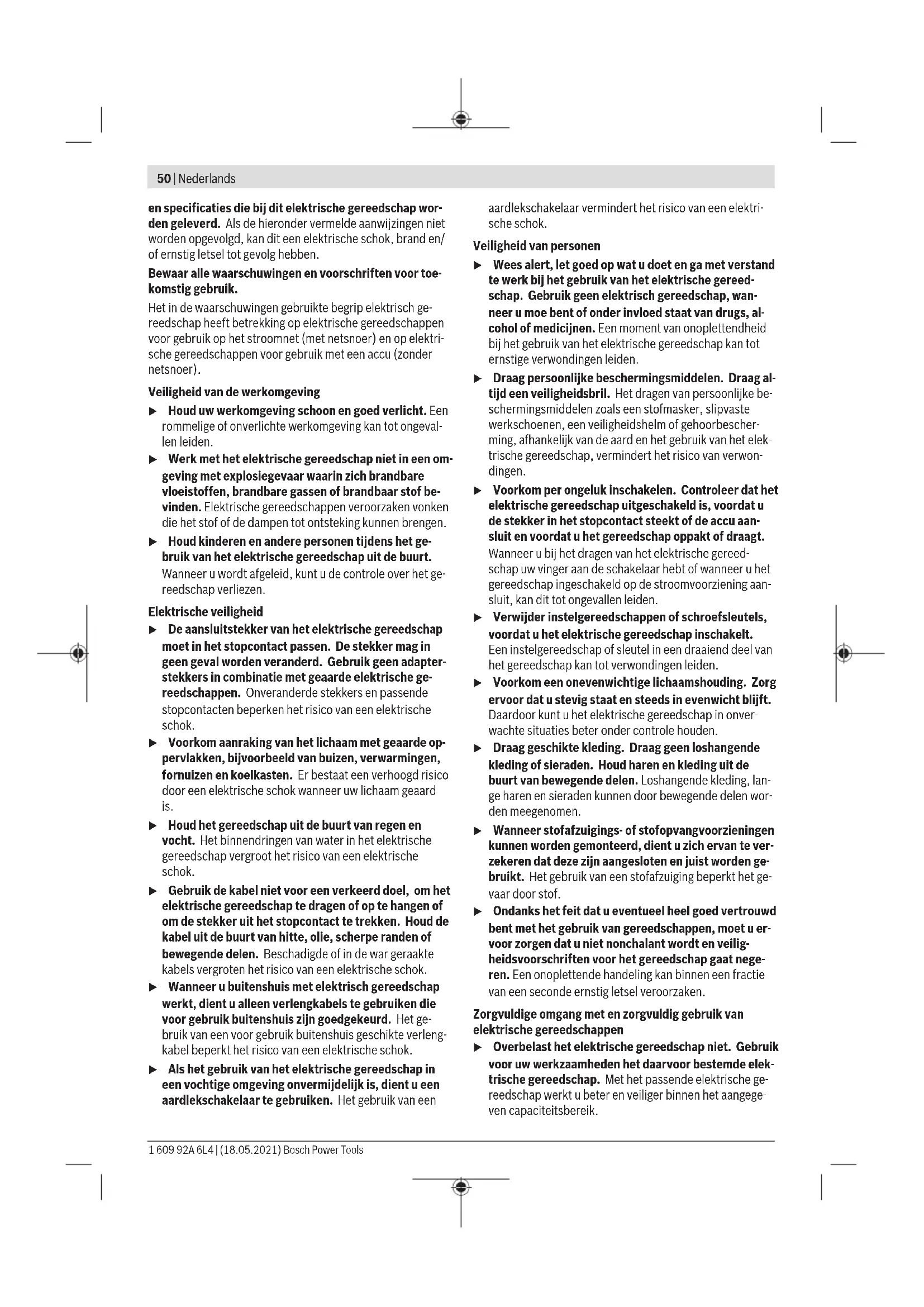 EU-conformiteitsverklaring Wij verklaren op eigen verantwoordelijkheid dat de genoemde producten voldoen aan alle desbetreffende bepalingen van de hierna genoemde richtlijnen en verordeningen en overeenstemmen met de volgende normen. Technisch dossier bij: * Elektrische rechte schroevendraaier met duwstart/ Productnummer Bosch Power Tools 1 609 92A 6L4 | (18.05.2021)II Elektrische rechte schroevendraaier met hendelstart