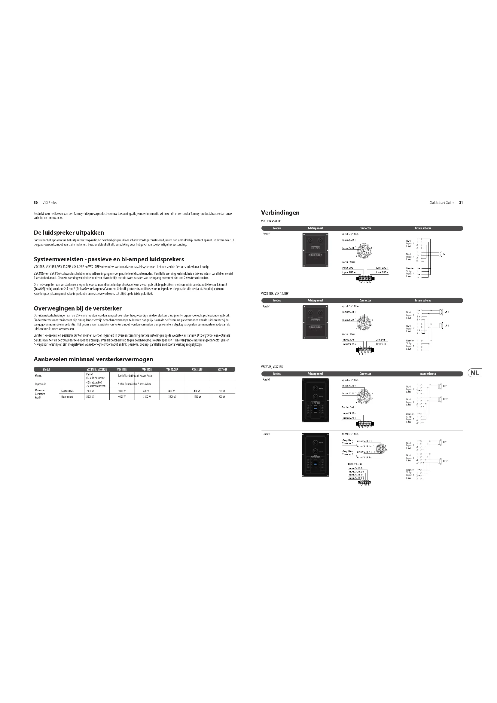 moderados até 45°C. O Music Tribe não se responsabiliza por perda alguma que possa ser sofrida por qualquer pessoa que dependa, seja de maneira completa ou parcial, de qualquer descrição, fotograa, ou declaração aqui contidas. Dados técnicos, aparências e outras informações estão sujeitas a modicações sem aviso prévio. Todas as marcas são propriedade de seus respectivos donos. Midas, Klark Teknik, Lab Gruppen, Lake, Tannoy, Turbosound, TC Electronic, TC Helicon, Behringer, Bugera, Oberheim, Auratone, Aston Microphones e Coolaudio são marcas ou marcas registradas do Music Tribe Global Brands Ltd. © Music Tribe Global Brands Ltd. 2021 Todos direitos reservados. Para obter os termos de garantia aplicáveis e condições e informações adicionais a respeito da garantia limitada do Music Tribe, favor vericar detalhes na íntegra através do website musictribe.com/warranty. Instruções de Segurança Importantes LEGAL RENUNCIANTE GARANTIA LIMITADA8 VSX Series Quick Start Guide 9 Waarschuwing Aansluitingen die gemerkt zijn met het symbool voeren een zodanig hoge spanning dat ze een risico vormen voor elektrische schokken. Gebruik uitsluitend kwalitatief hoogwaardige, in de handel verkrijgbare luidsprekerkabels die voorzien zijn van ¼"TS stekkers. Laat uitsluitend gekwaliceerd personeel alle overige installatie- of modicatiehandelingen uitvoeren. Dit symbool wijst u altijd op belangrijke bedienings - en onderhoudsvoorschriften in de bijbehorende documenten. Wijvragen u dringend de handleiding te lezen. Attentie Verwijder in geen geval de bovenste afdekking (van het achterste gedeelte) anders bestaat er gevaar voor een elektrische schok. Het apparaat bevat geen te onderhouden onderdelen. Reparatiewerkzaamheden mogen uitsluitend door gekwaliceerd personeel uitgevoerd worden. Attentie Om het risico op brand of elektrische schokken te beperken, dient u te voorkomen dat dit apparaat wordt blootgesteld aan regen en vocht. Het apparaat mag niet worden blootgesteld aan neerdruppelend of opspattend water en er mogen geen met water gevulde voorwerpen – zoals een vaas – op het apparaat worden gezet. Attentie Deze onderhoudsinstructies zijn uitsluitend bedoeld voor gekwaliceerd onderhoudspersoneel. Omelektrische schokken te voorkomen, mag u geen andere onderhoudshandelingen verrichten dan in de bedieningsinstructies vermeld staan. Reparatiewerkzaamheden mogen alleen uitgevoerd worden door gekwaliceerd onderhoudspersoneel.