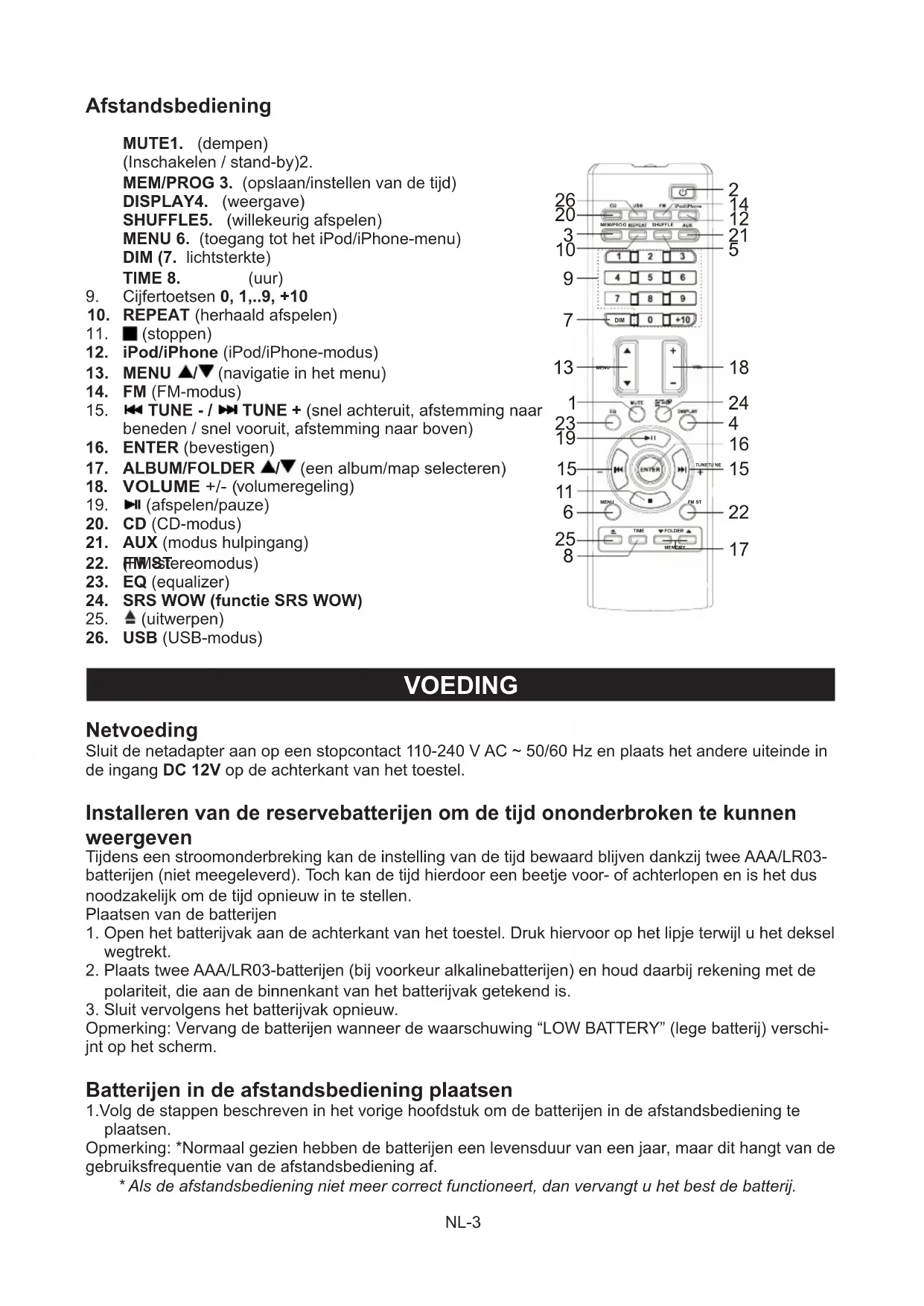 - Als het toestel aanstaat, gaat het automatisch waar de iPod/iPhone modus. U kunt ook op de toets iPod/iPhone drukken om deze modus te selecteren.