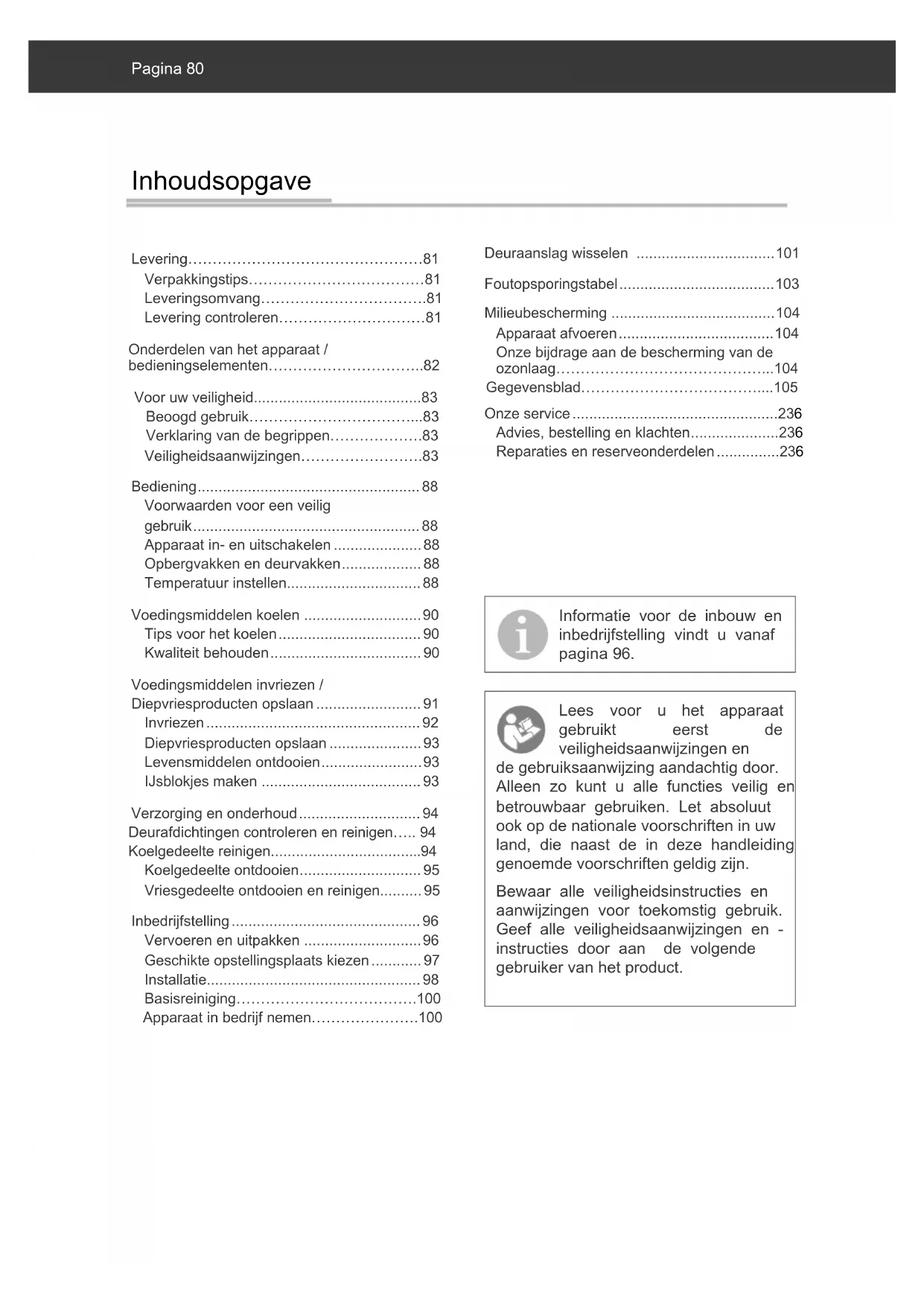 - Voorwaarden voor een veilig gebruik p. 88