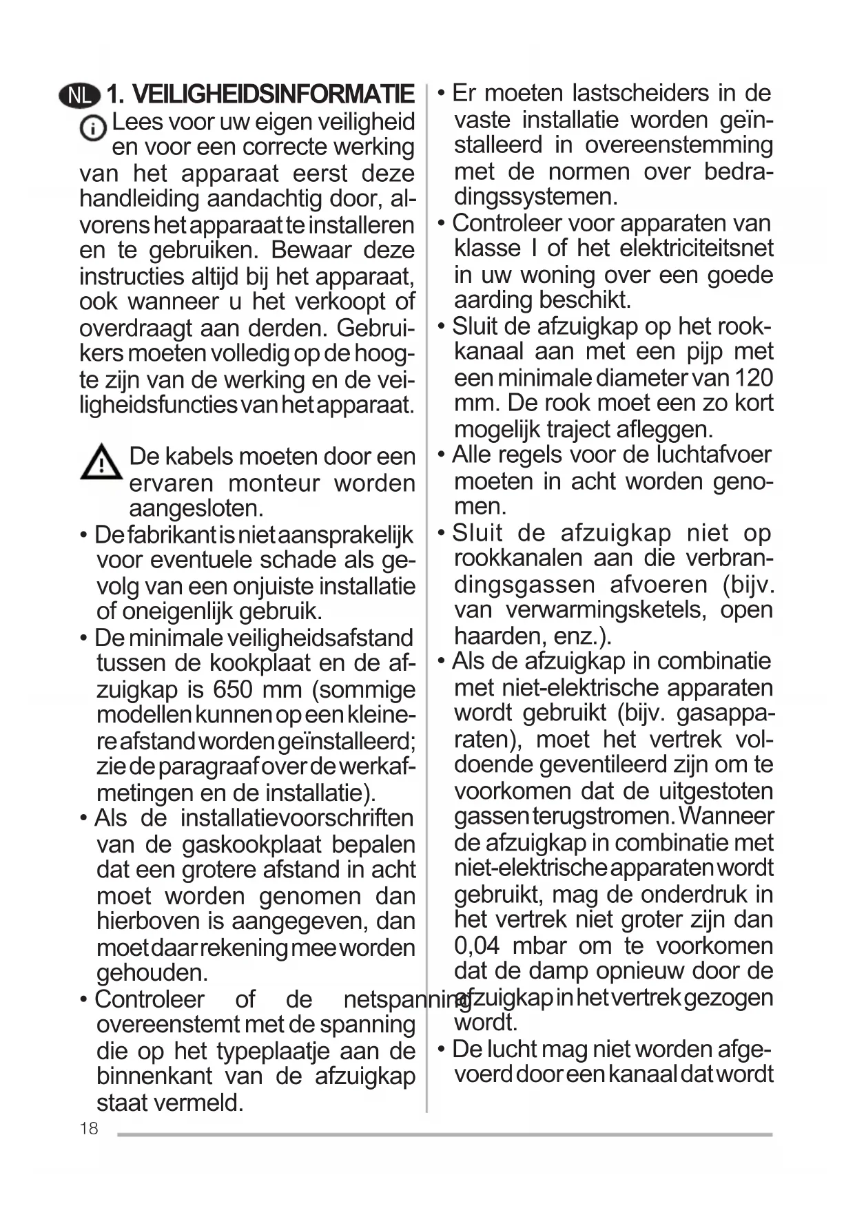 - Gebruik de afzuigkap nooit voor andere doeleinden dan waarvoor hij bedoeld is.
