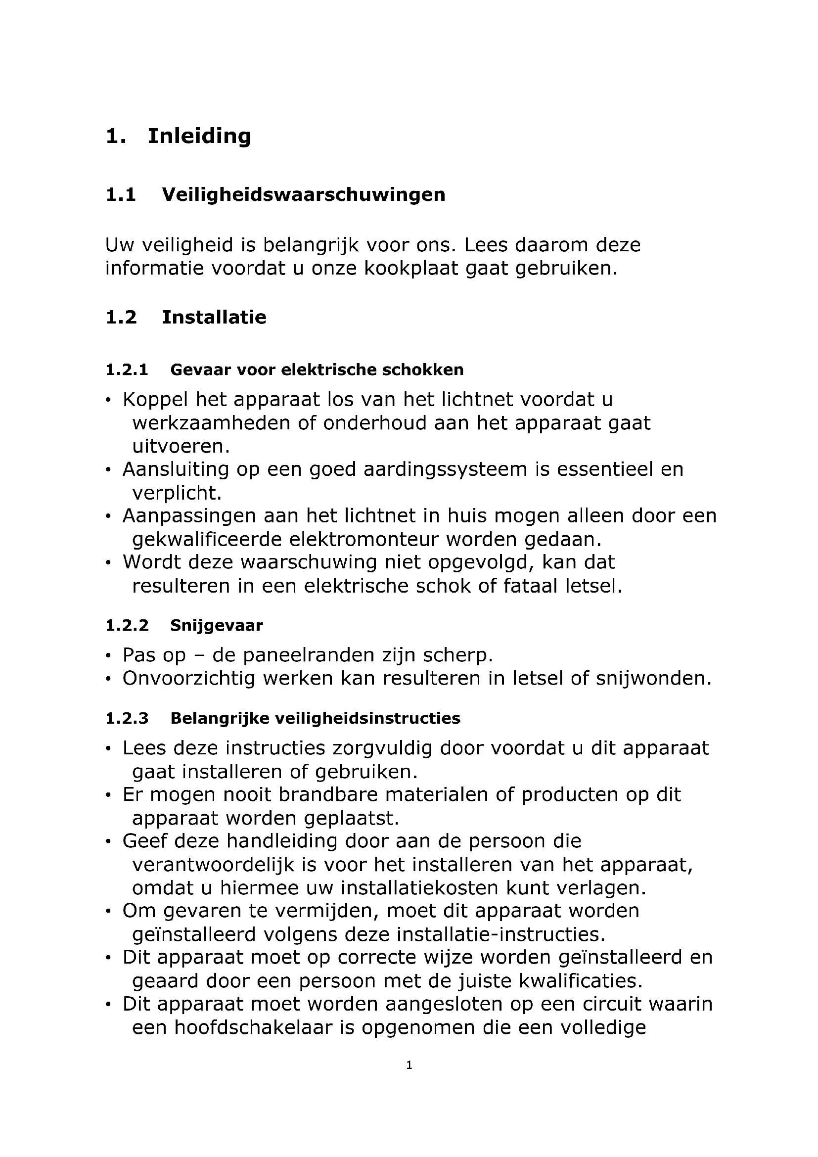 1.2.1 Gevaar voor elektrische schokken .................................... 1