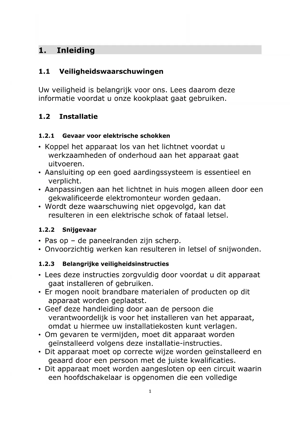 1.2.1 Gevaar voor elektrische schokken