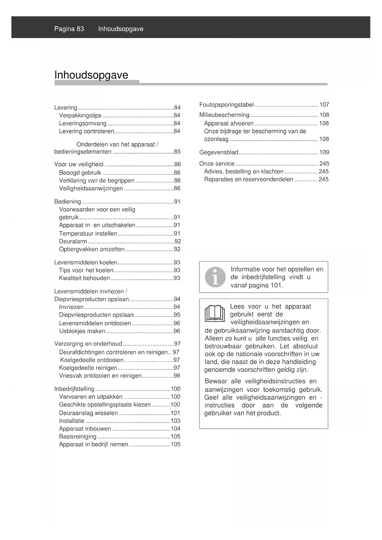 - Koelgedeelte ontdooien…………………….97 Koelgedeelte reinigen p. 97