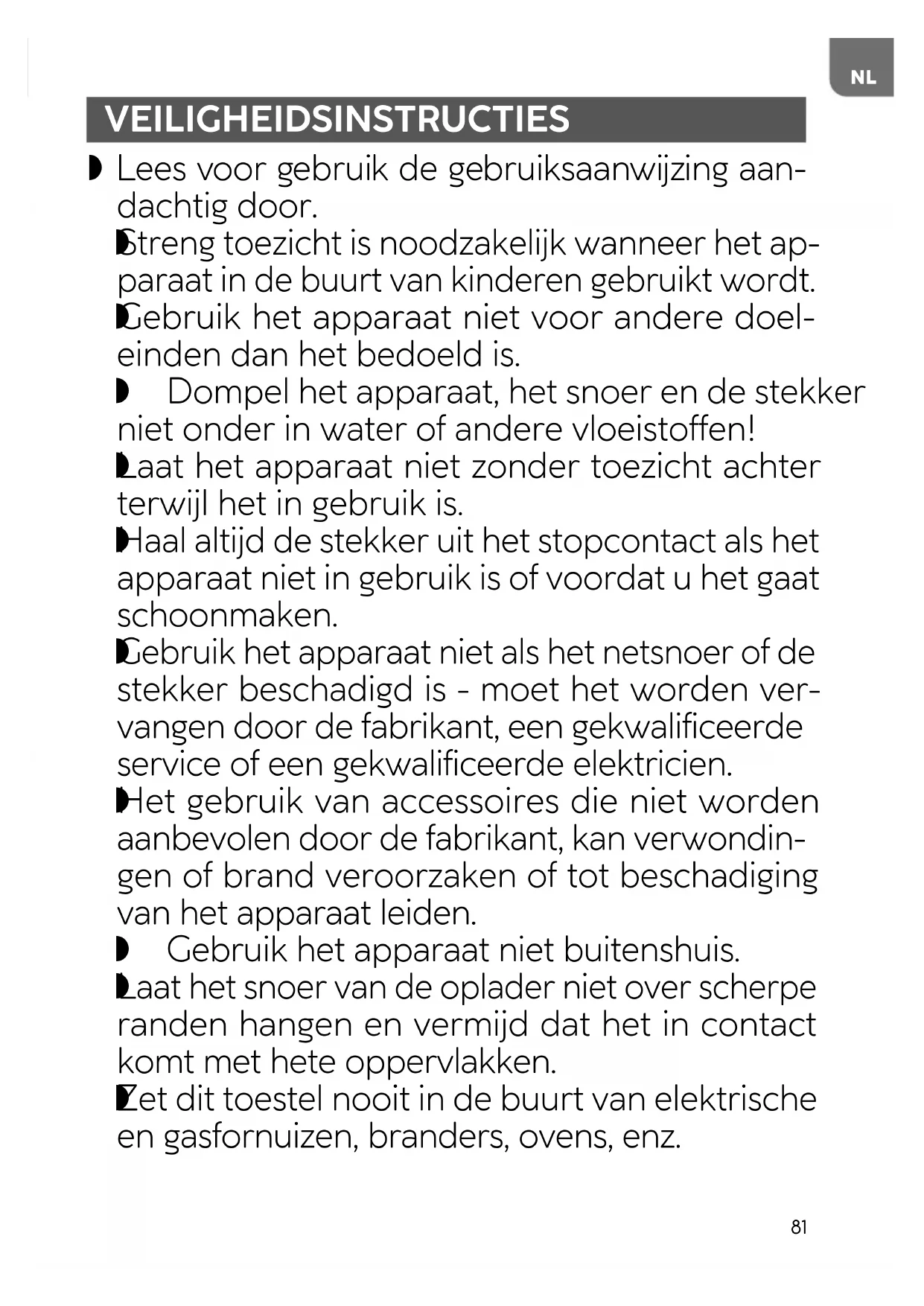 VEILIGHEIDSINSTRUCTIES Lees voor gebruik de gebruiksaanwijzing aan- dachtig door.