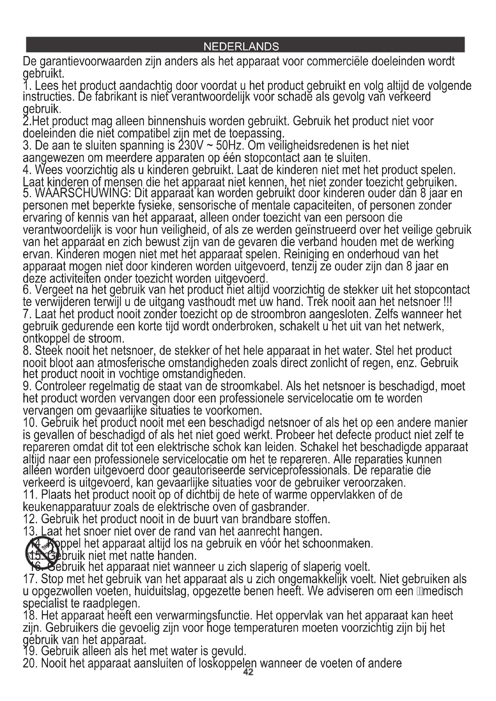 19. Gebruik alleen als het met water is gevuld.