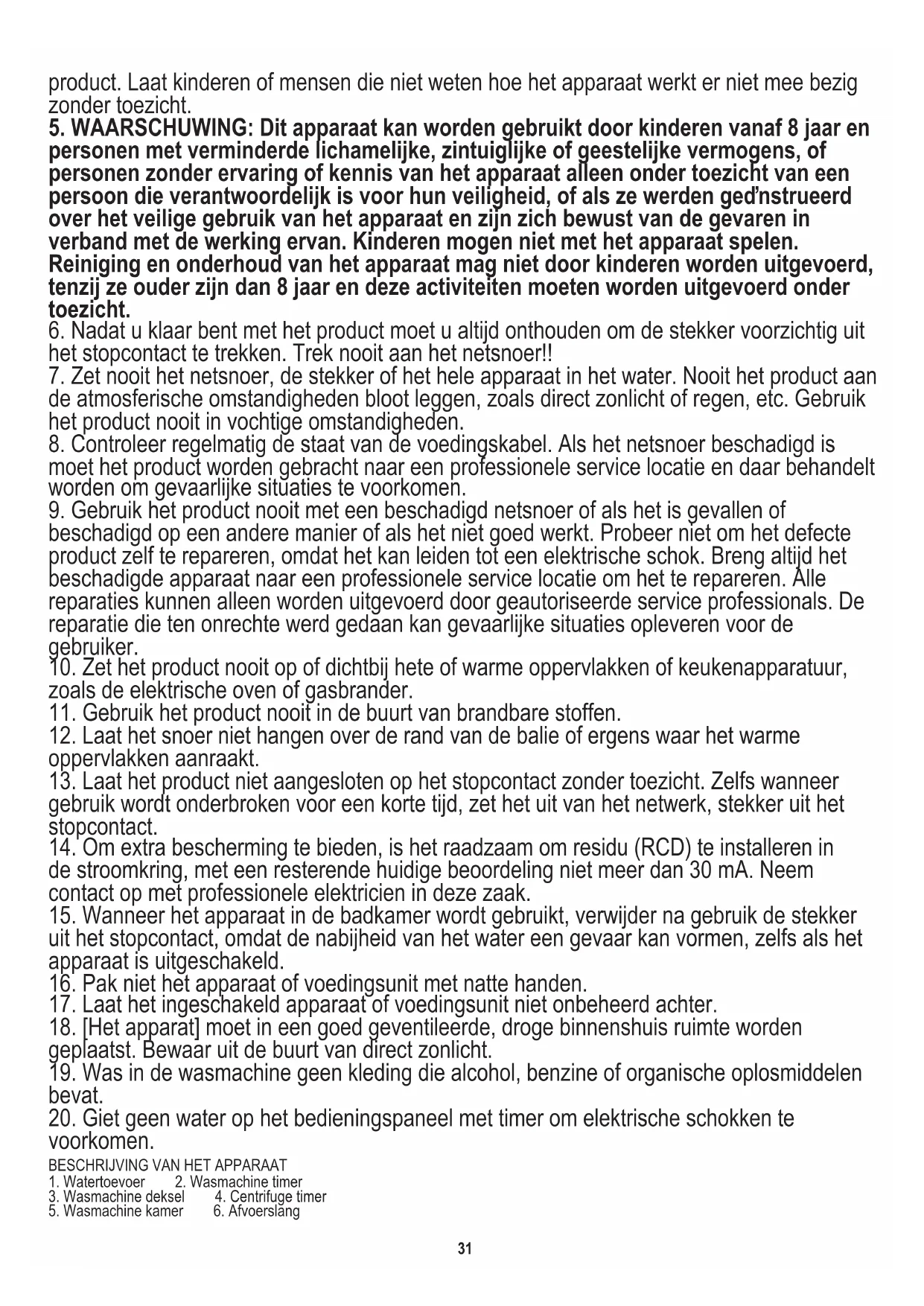 5. WAARSCHUWING: Dit apparaat kan worden gebruikt door kinderen vanaf 8 jaar en