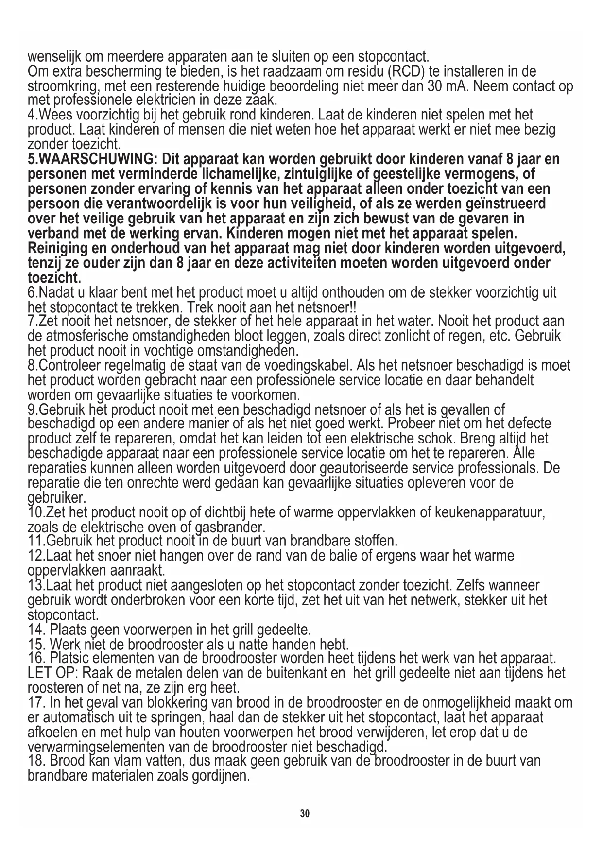18. Brood kan vlam vatten, dus maak geen gebruik van de broodrooster in de buurt van