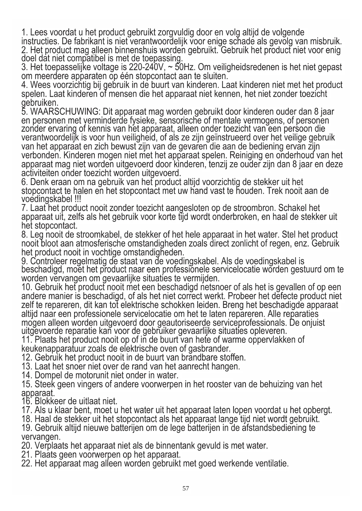 22. Het apparaat mag alleen worden gebruikt met goed werkende ventilatie.