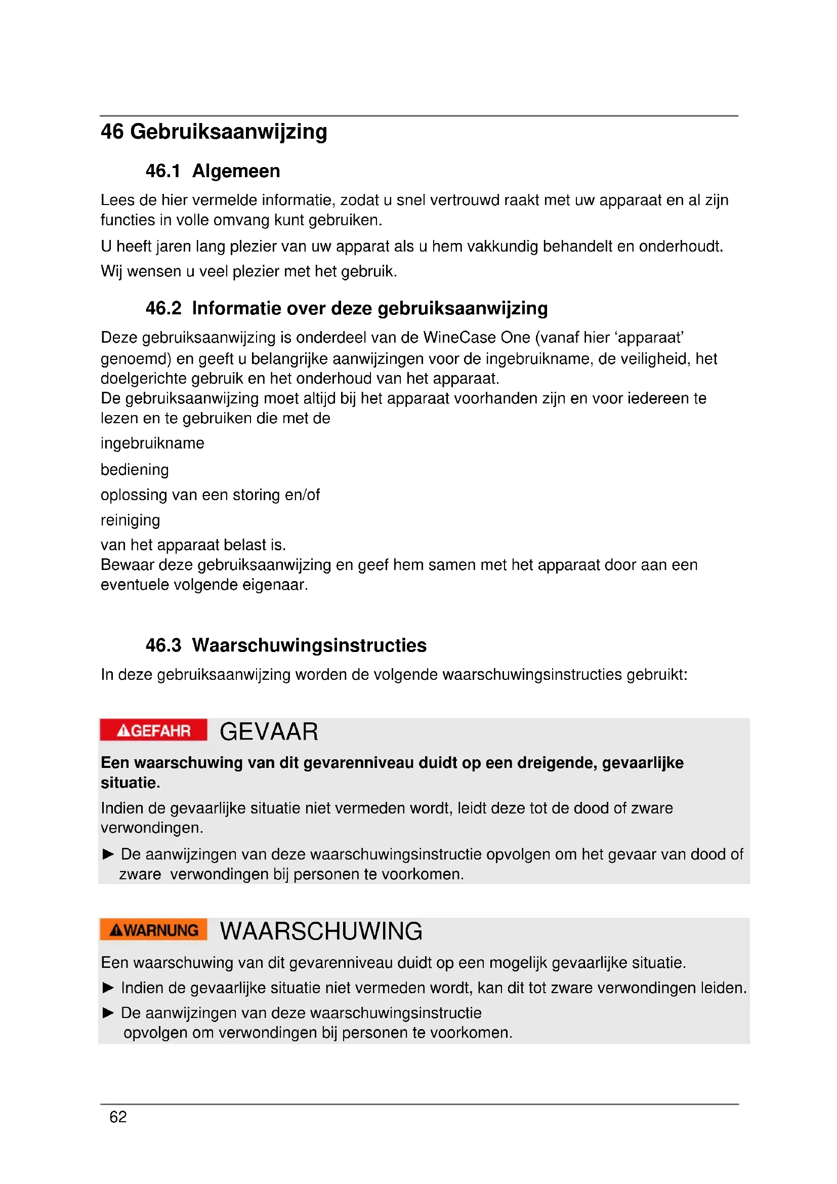 46.2 Informatie over deze gebruiksaanwijzing .............................................................. 62