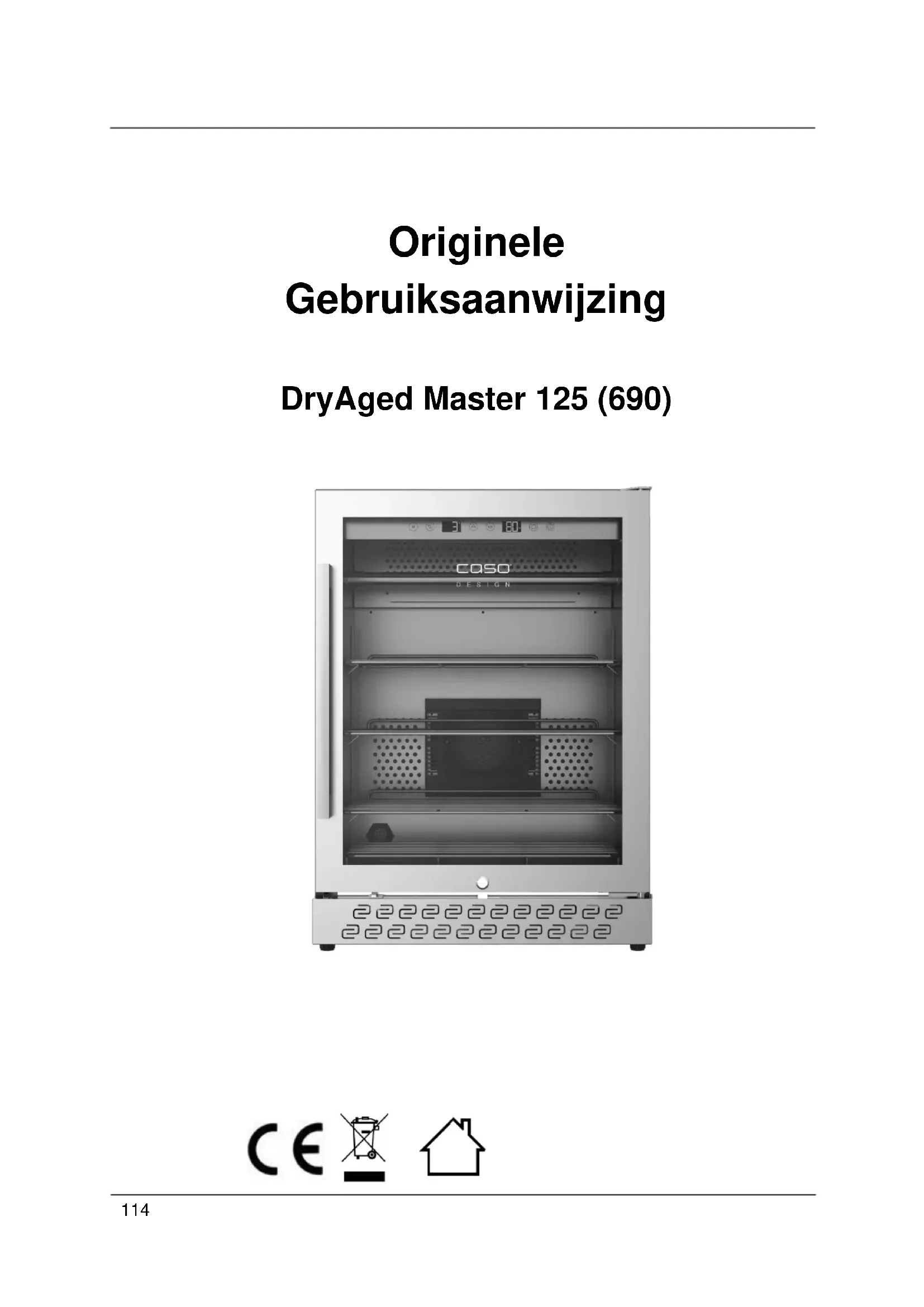Deze gebruiksaanwijzing is onderdeel van de DryAged Master 125 (vanaf hier ‘apparaat’ genoemd) en geeft u belangrijke aanwijzingen voor de ingebruikname, de veiligheid, het doelgerichte gebruik en het onderhoud van het apparaat. De gebruiksaanwijzing moet altijd bij het apparaat voorhanden zijn en voor iedereen te lezen en te gebruiken die met de ingebruikname bediening oplossing van een storing en/of reiniging van het apparaat belast is. Bewaar deze gebruiksaanwijzing en geef hem samen met het apparaat door aan een eventuele volgende eigenaar.