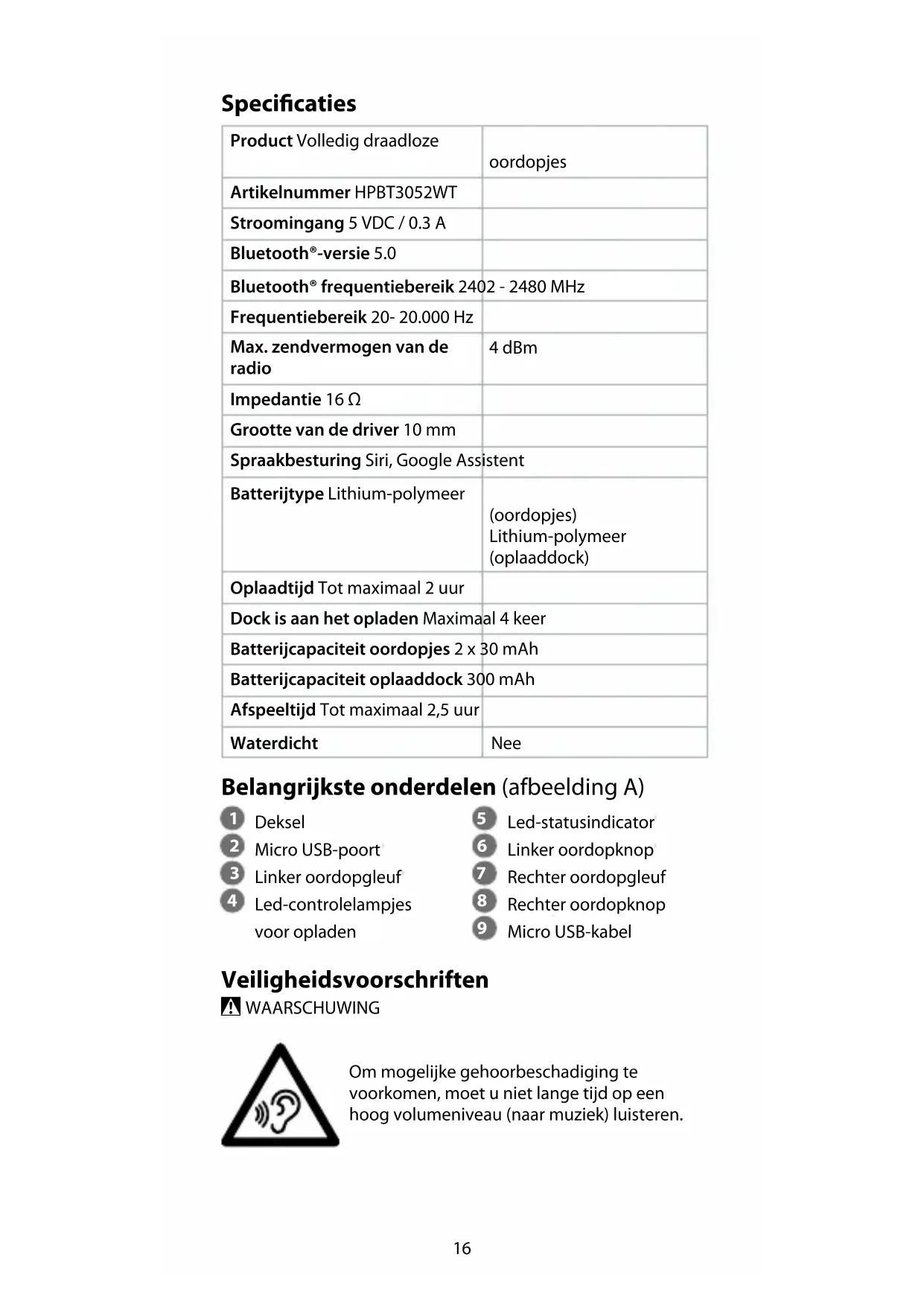 GEBRUIKSAANWIJZING HPBT3052WT NEDIS