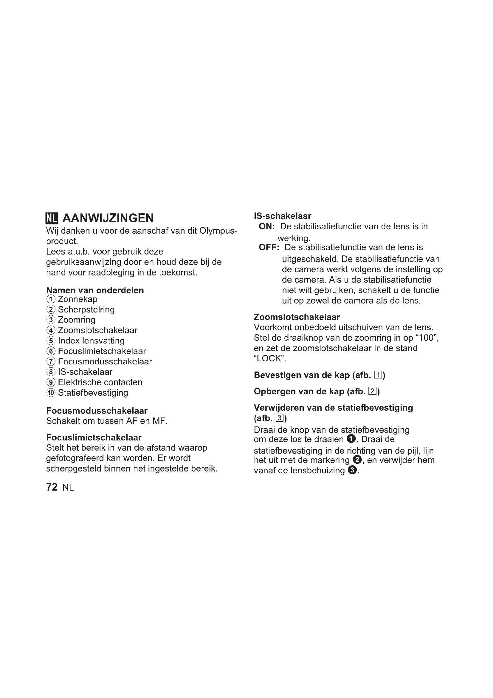 GEBRUIKSAANWIJZING M.Zuiko Digital ED 100400mm f56.3 IS OLYMPUS