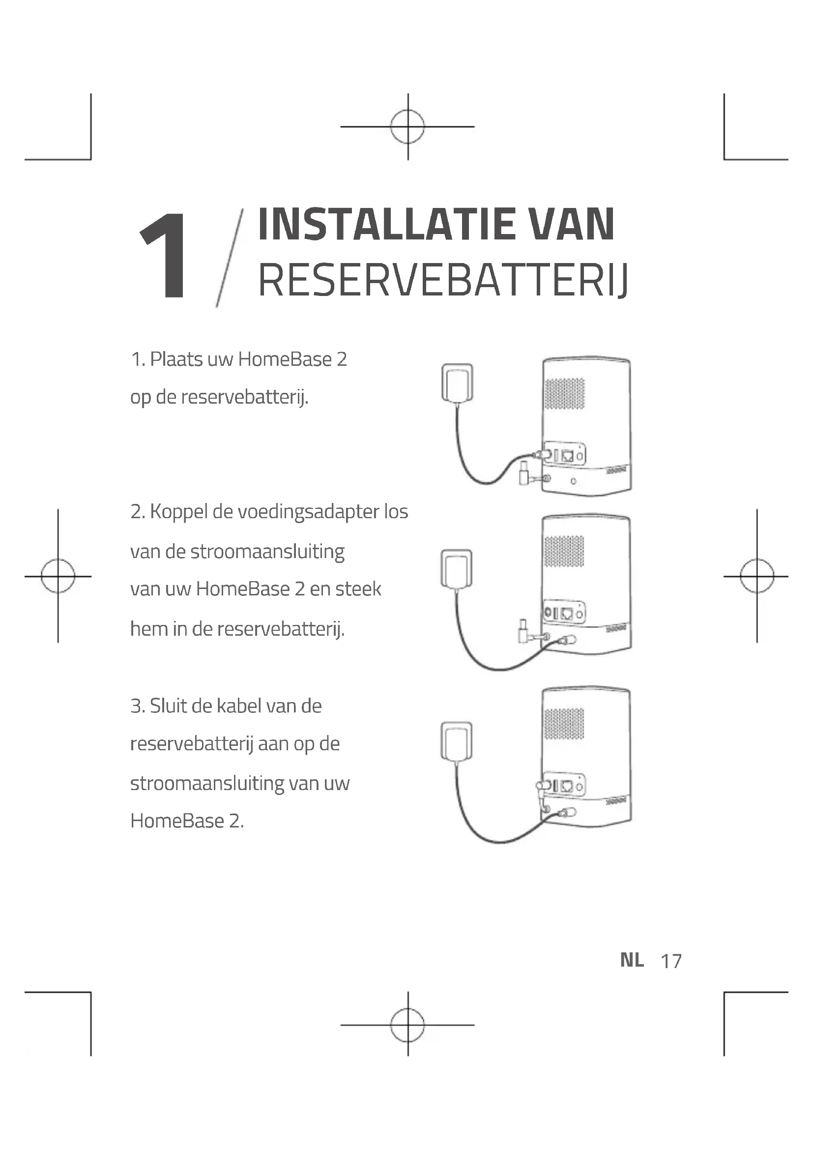 reservebatterij aan op de stroomaansluiting van uw HomeBase 2. INSTALLATIE VAN RESERVEBATTERIJ 1NL