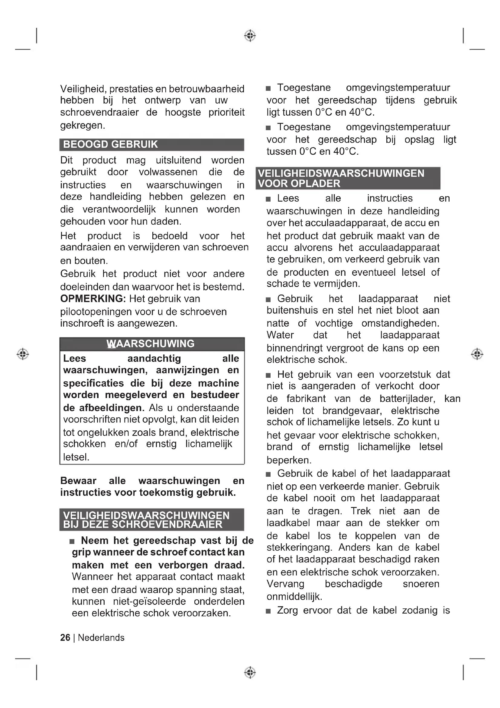 schroevendraaier de hoogste prioriteit gekregen. BEOOGD GEBRUIK Dit product mag uitsluitend worden gebruikt door volwassenen die de instructies en waarschuwingen in deze handleiding hebben gelezen en