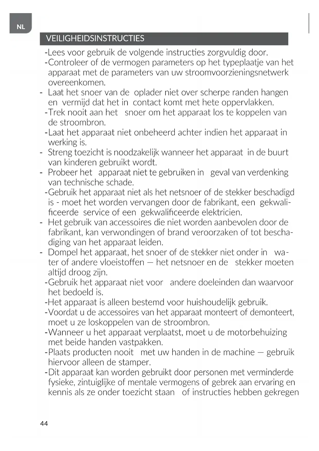 VEILIGHEIDSINSTRUCTIES - Lees voor gebruik de volgende instruces zorgvuldig door.
