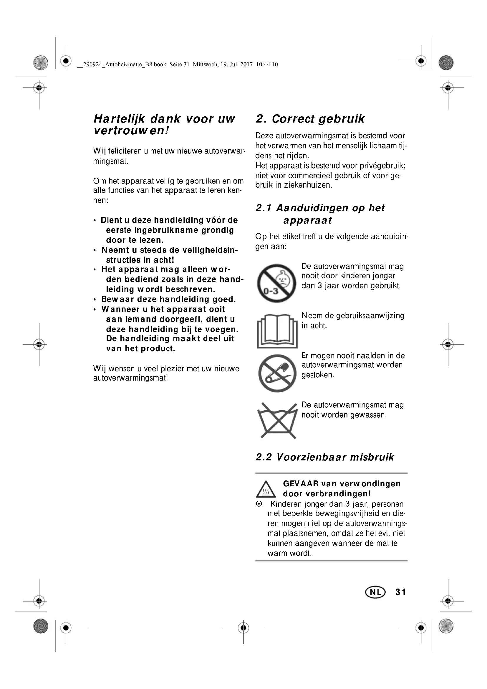 Hartelijk dank voor uw vertrouwen! Wij feliciteren u met uw nieuwe autoverwar- mingsmat. Om het apparaat veilig te gebruiken en om alle functies van het apparaat te leren ken- nen: