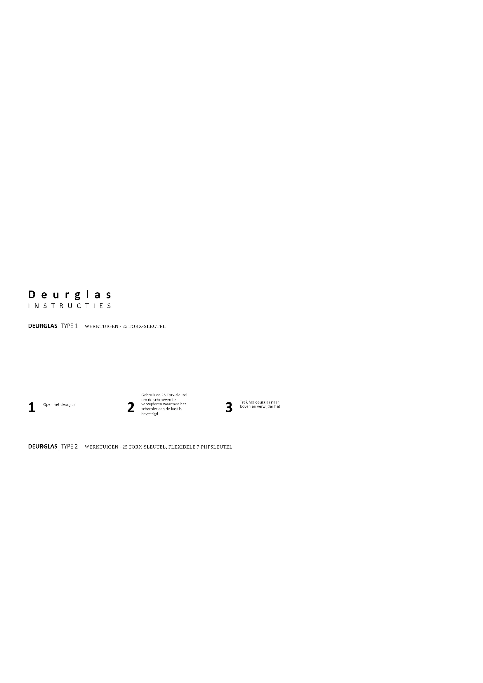 Open het deurglas Gebruik de 25 Torx-sleutel om de schroeven te verwijderen waarmee het scharnier aan de kast is bevesgd Trek het deurglas naar boven en verwijder het DEURGLAS | TYPE 2 WERKTUIGEN - 25 TORX-SLEUTEL, FLEXIBELE 7-PIJPSLEUTEL