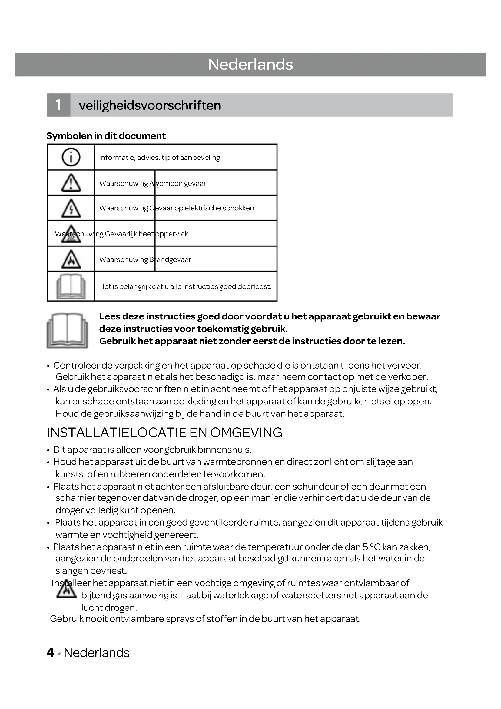 Symbolen in dit document Informatie, advies, tip of aanbeveling Waarschuwing Algemeen gevaar Waarschuwing Gevaar op elektrische schokken Waarschuwing Gevaarlijk heet oppervlak Waarschuwing Brandgevaar Het is belangrijk dat u alle instructies goed doorleest. Lees deze instructies goed door voordat u het apparaat gebruikt en bewaar deze instructies voor toekomstig gebruik. Gebruik het apparaat niet zonder eerst de instructies door te lezen.