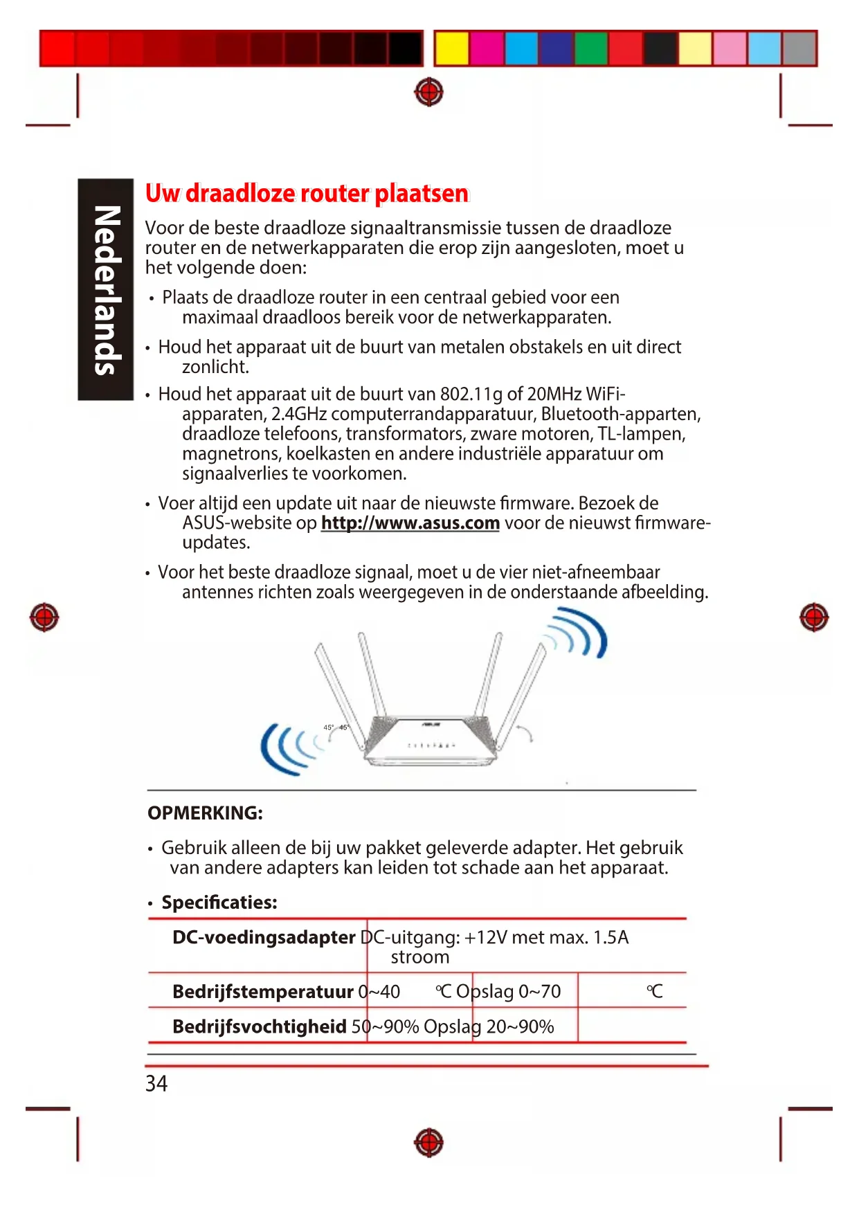 - Voer altijd een update uit naar de nieuwste rmware. Bezoek de ASUS-website op http://www.asus.com voor de nieuwst rmware- updates.