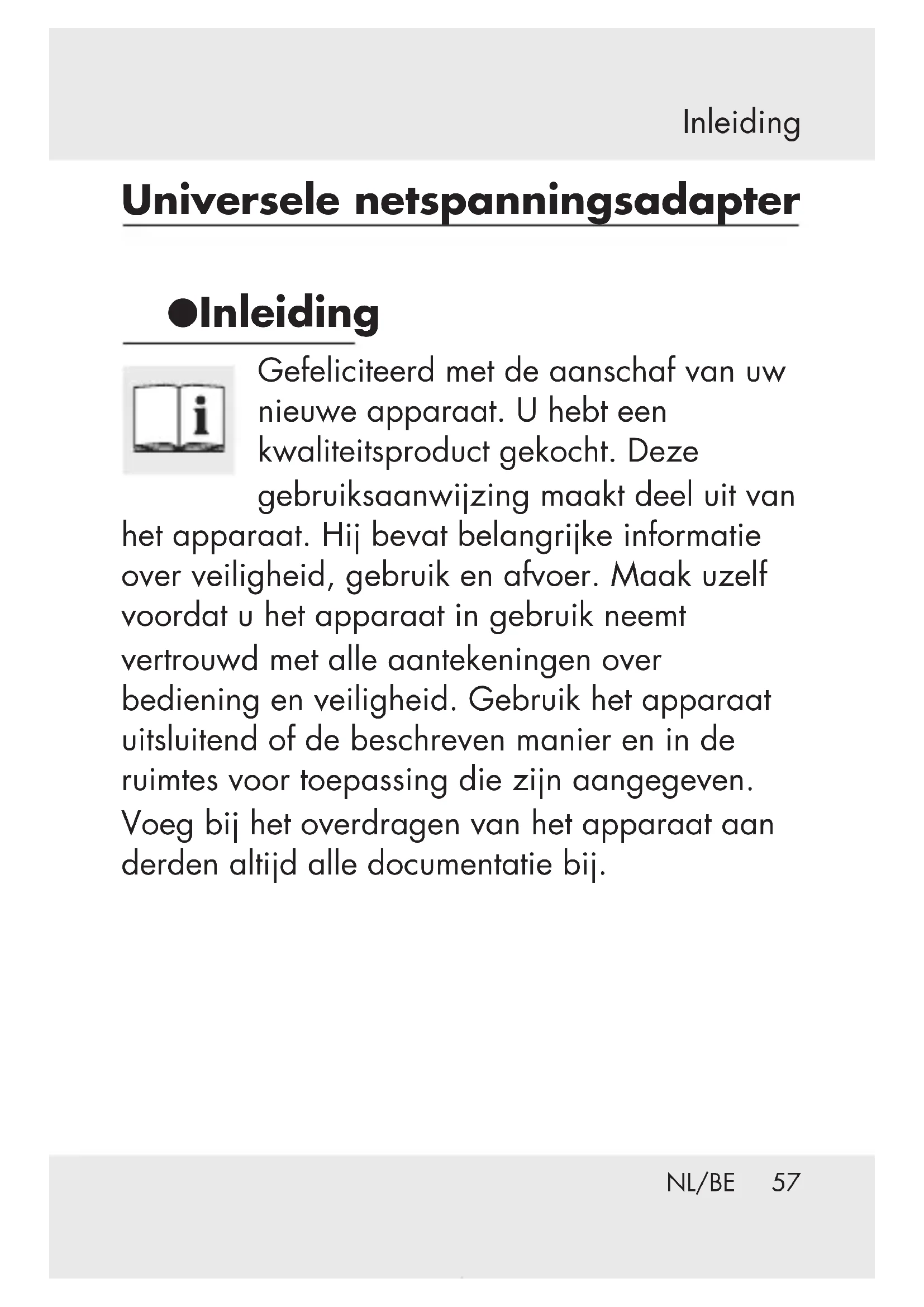 universele netspAnningsAdApter Bedienings- en veiligheidsinstructies