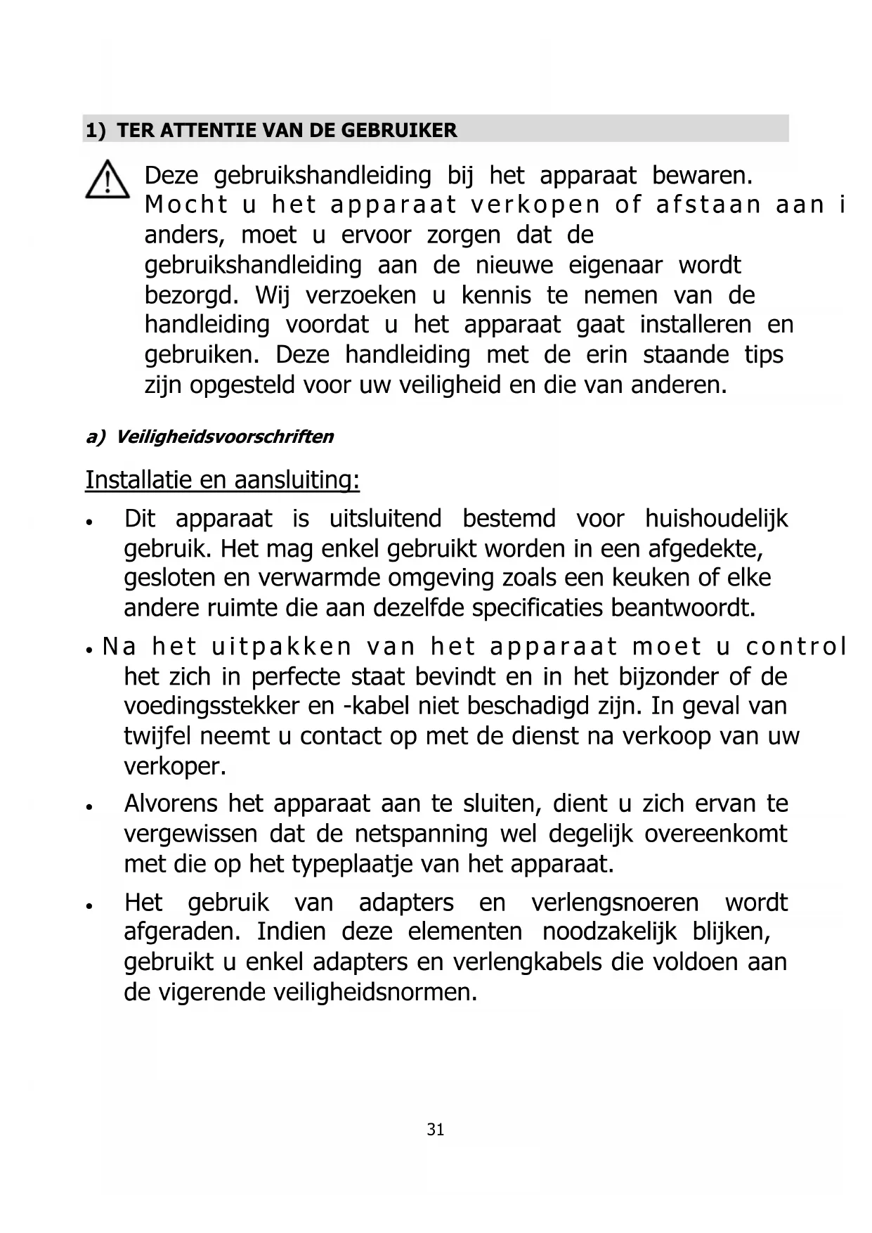 Belangrijk: Voor installatie en gebruik van uw apparaat deze installatie- en gebruikersgids aandachtig lezen. U zult snel gewend raken aan de werking ervan.30 INHOUDSOPGAVE