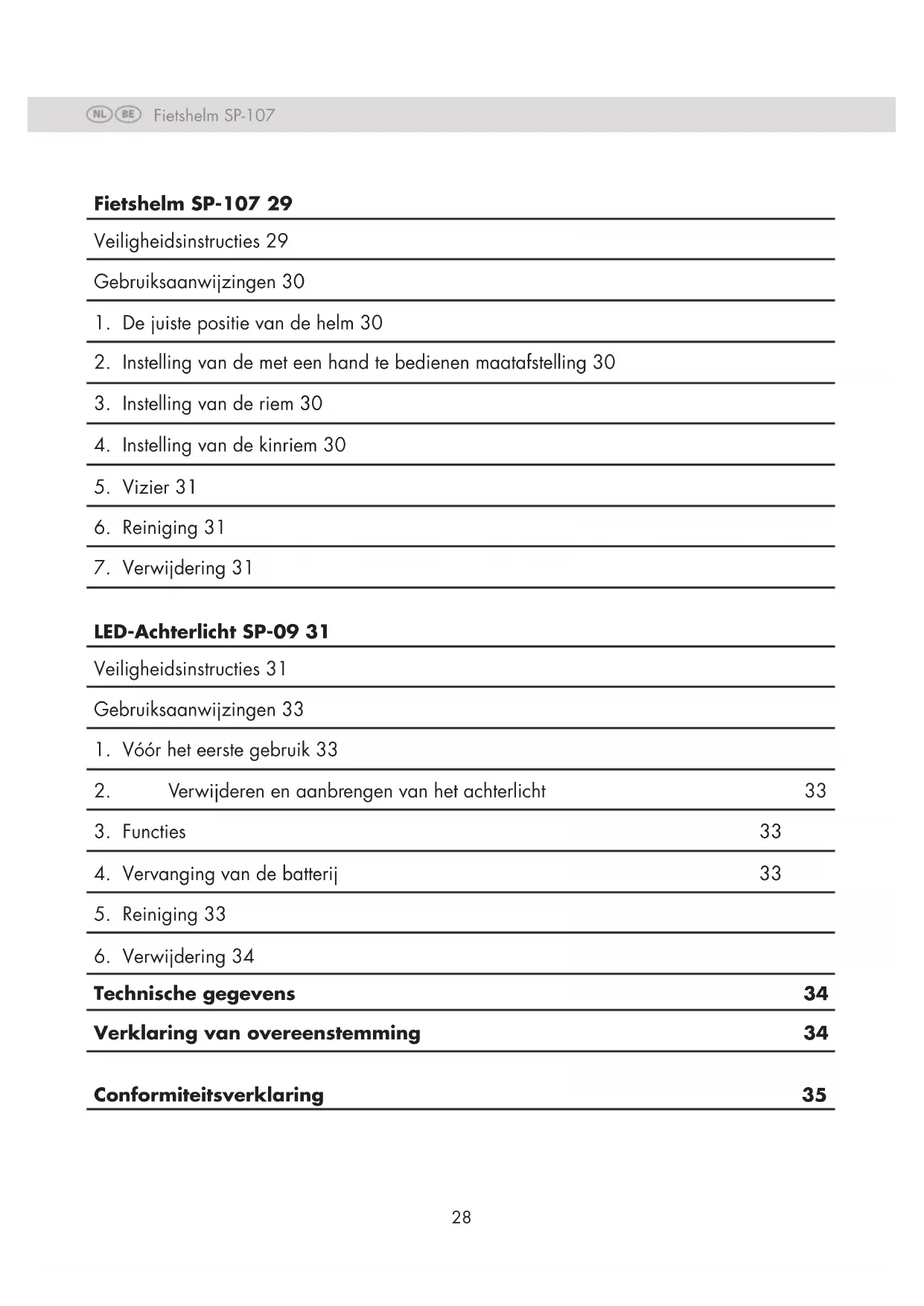 LED-Achterlicht SP-09 31 Veiligheidsinstructies 31 Gebruiksaanwijzingen 33