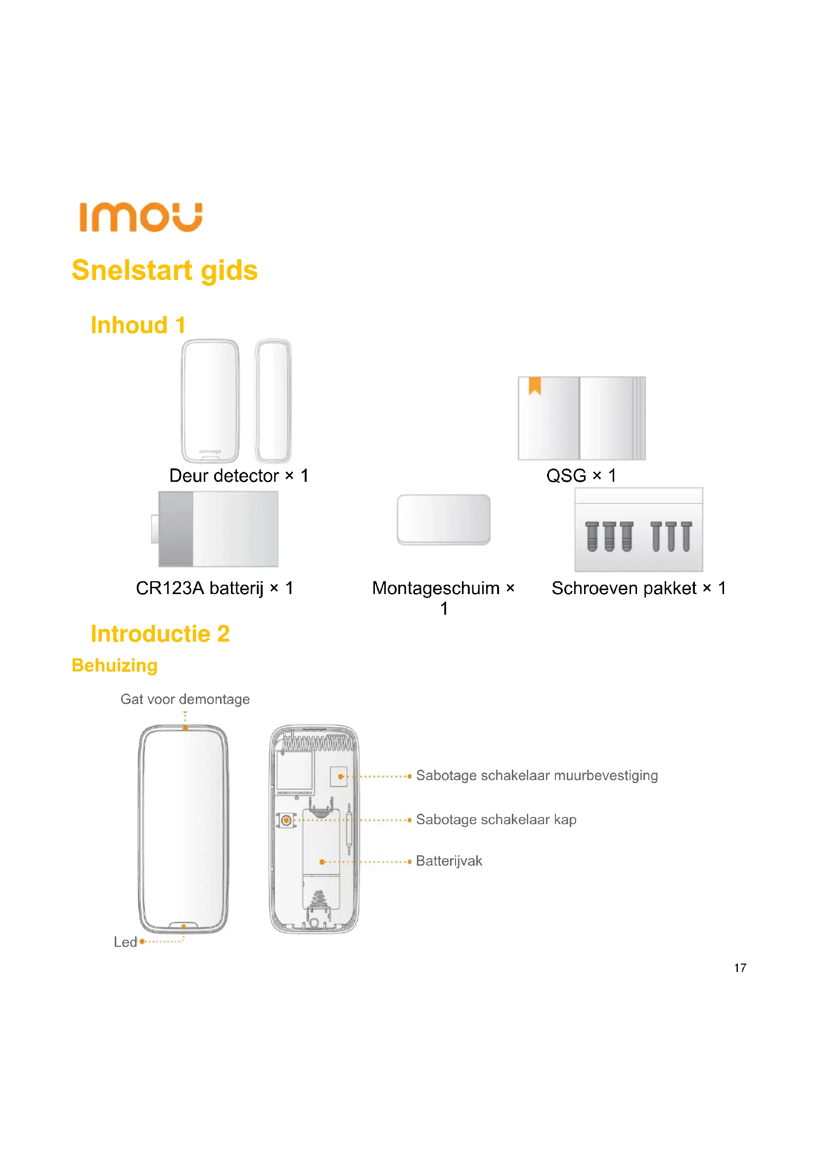 Schroeven pakket × 1 Introductie 2 Behuizing Gat voor demontage Sabotage schakelaar muurbevestiging Sabotage schakelaar kap Batterijvak Led18 Magneet en Montageschuim