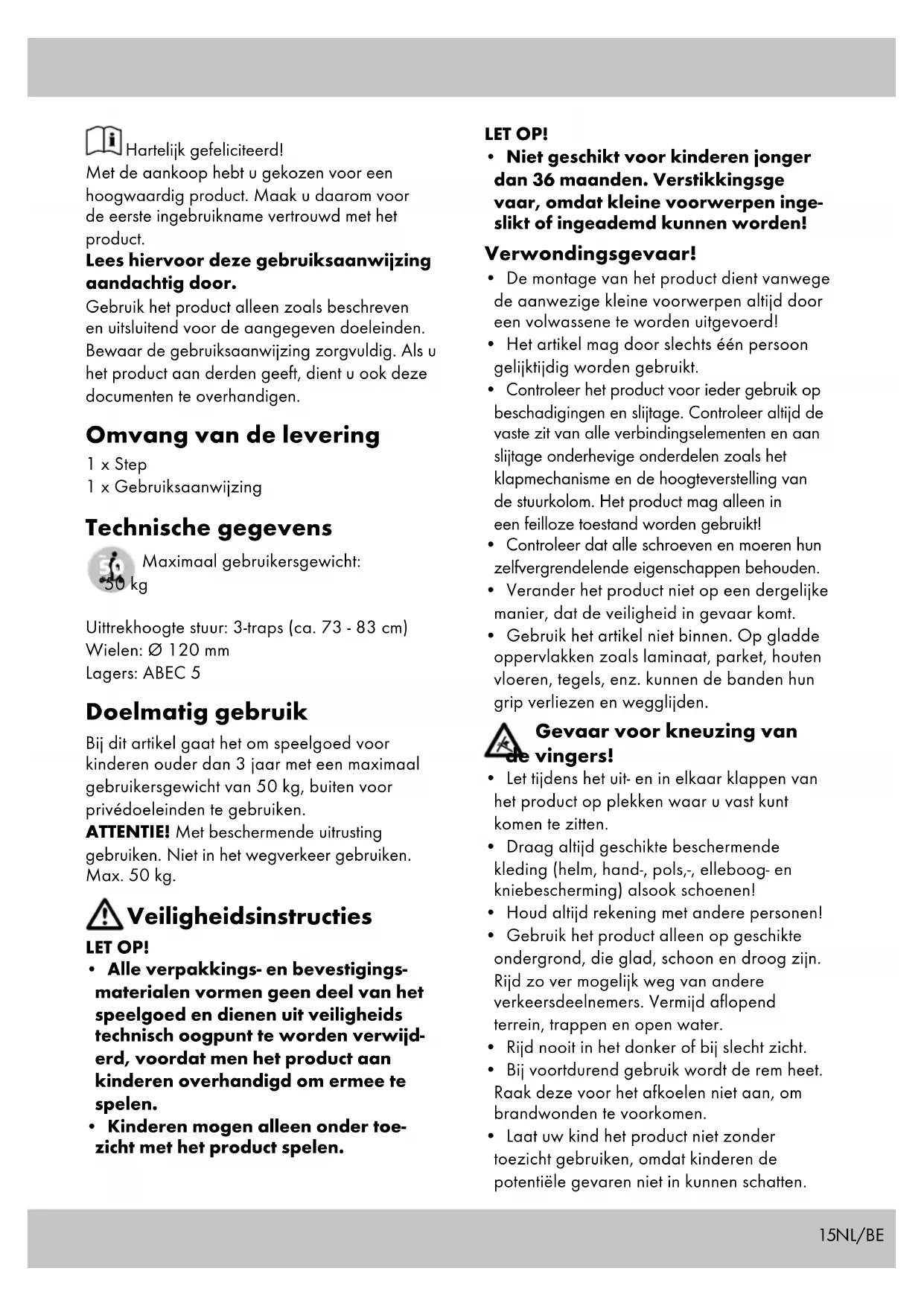 - Bij het gebruik van de step dient men behendig te zijn, om het vallen en botsen te voorkomen, wat tot letsel van de bestuurder of andere personen kan leiden. Voorkom materiële schades!