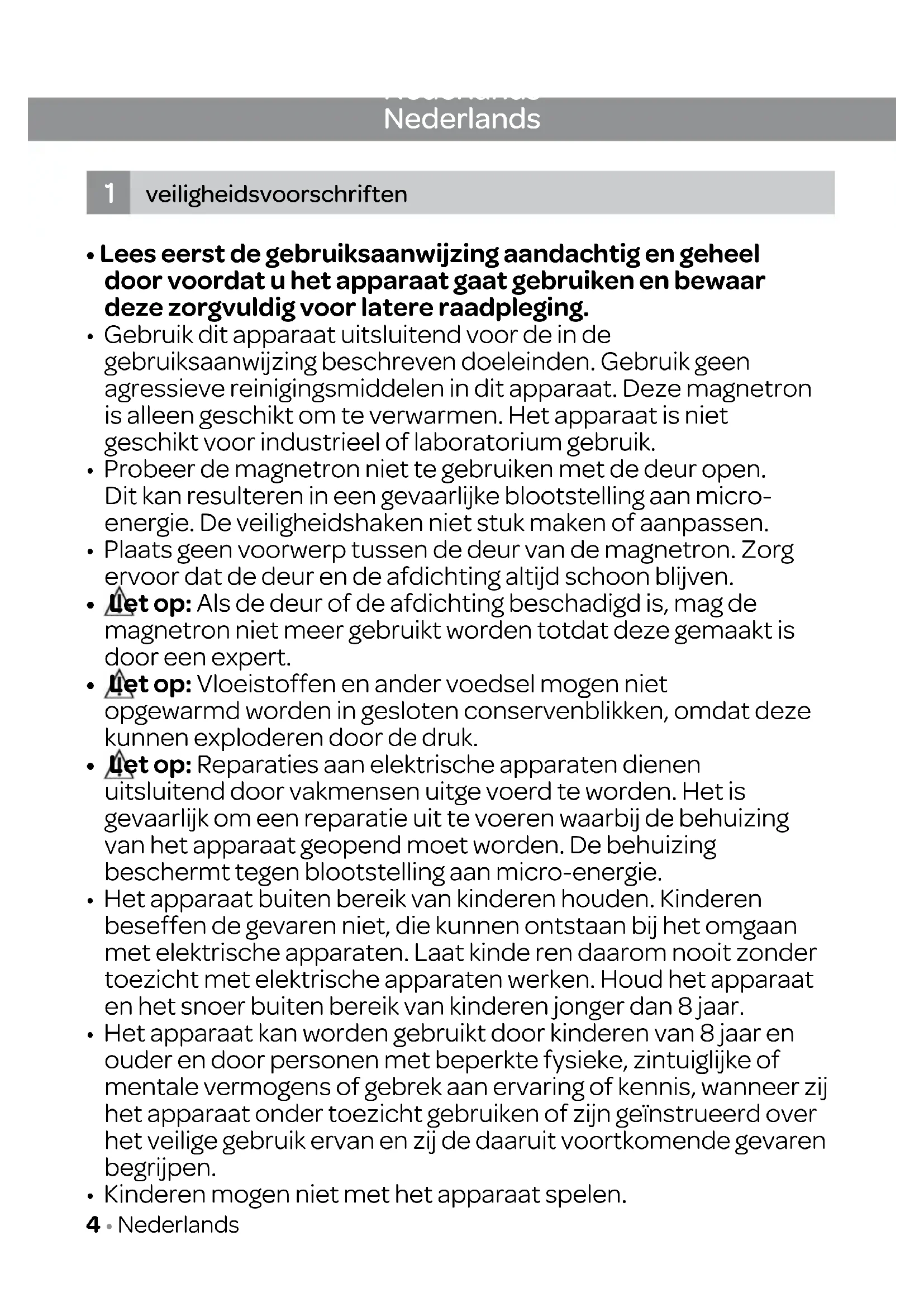 - Kinderen mogen niet met het apparaat spelen. Nederlands veiligheidsvoorschriften