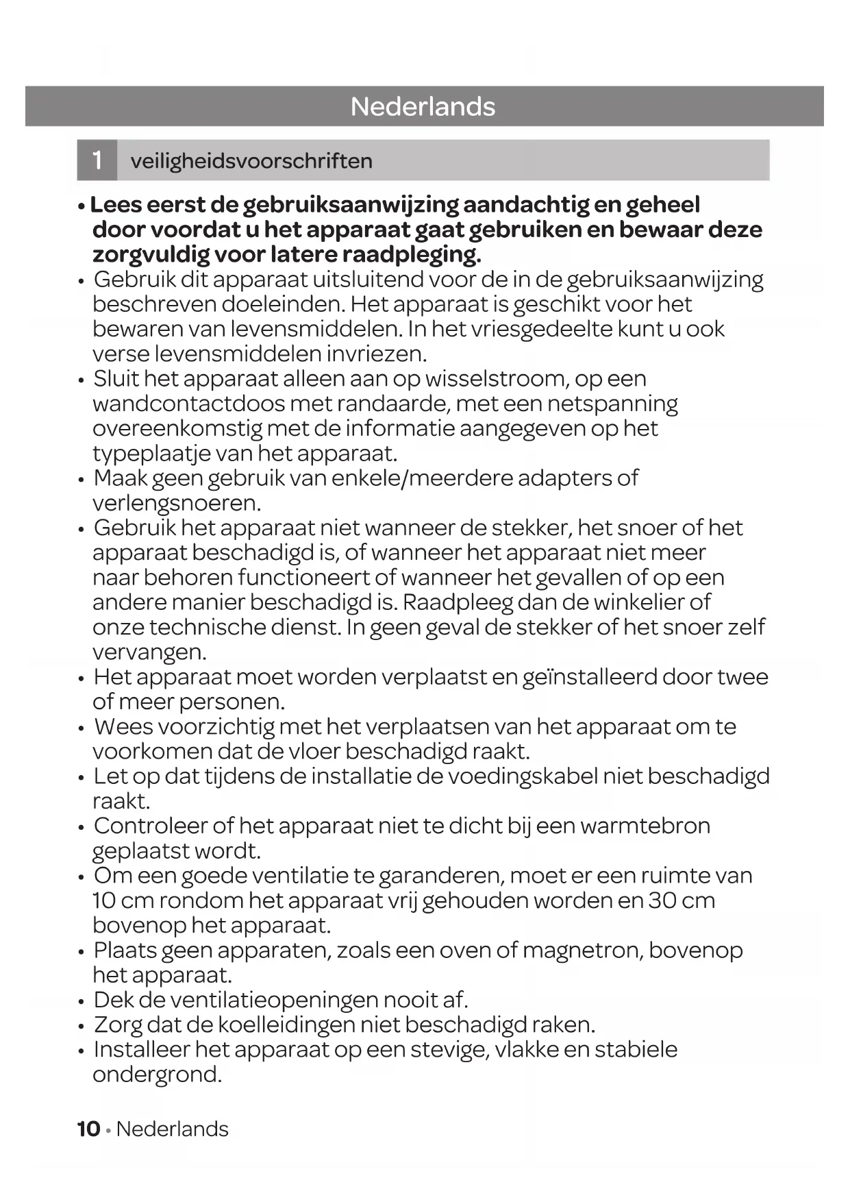 - Installeer het apparaat op een stevige, vlakke en stabiele ondergrond. Nederlands veiligheidsvoorschriften