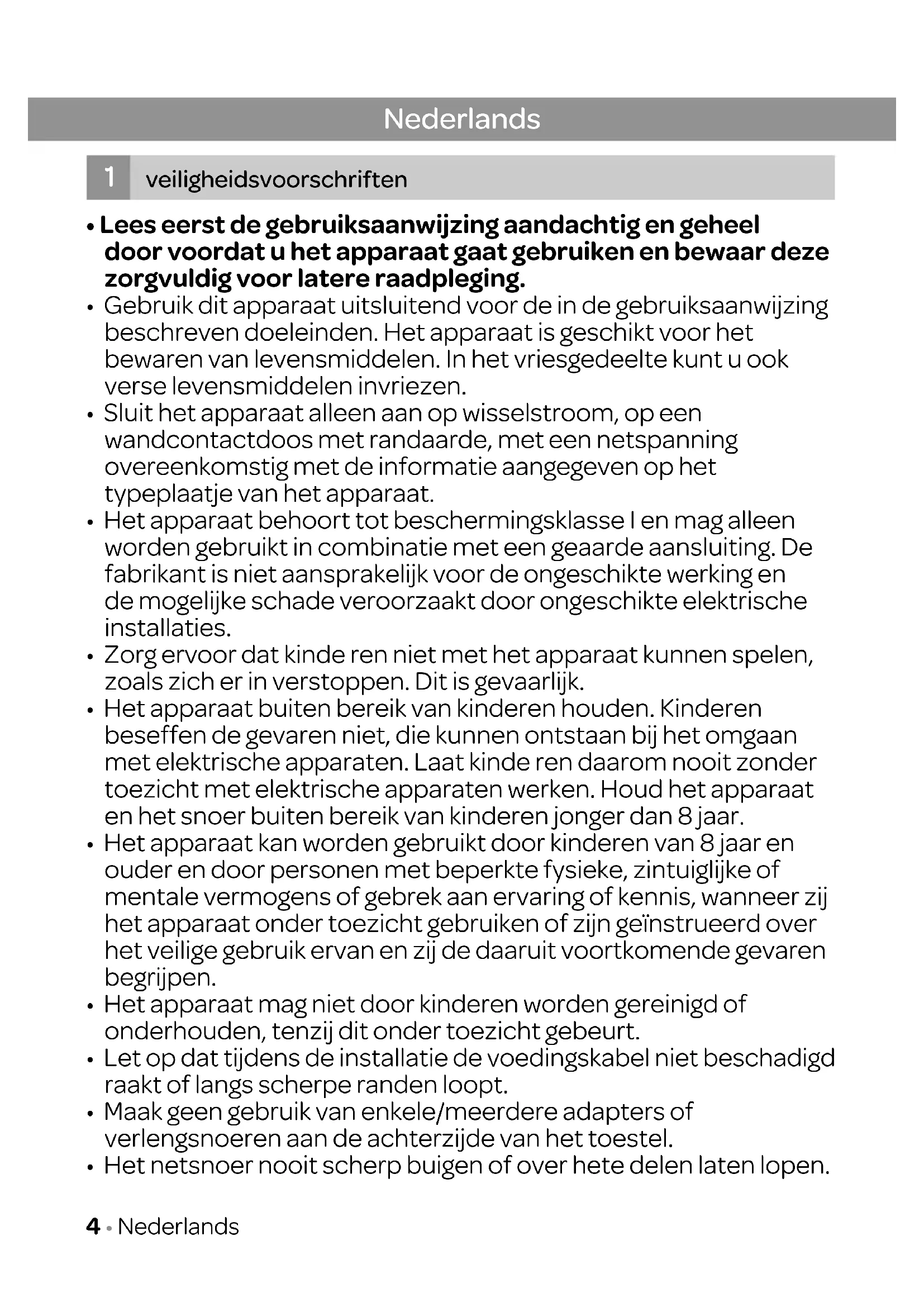 - Het netsnoer nooit scherp buigen of over hete delen laten lopen. Nederlands veiligheidsvoorschriften