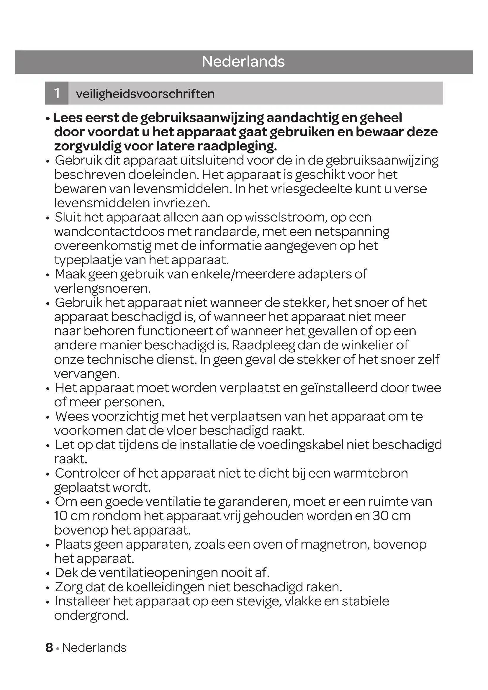 1. Veiligheidsvoorschriften pagina 8