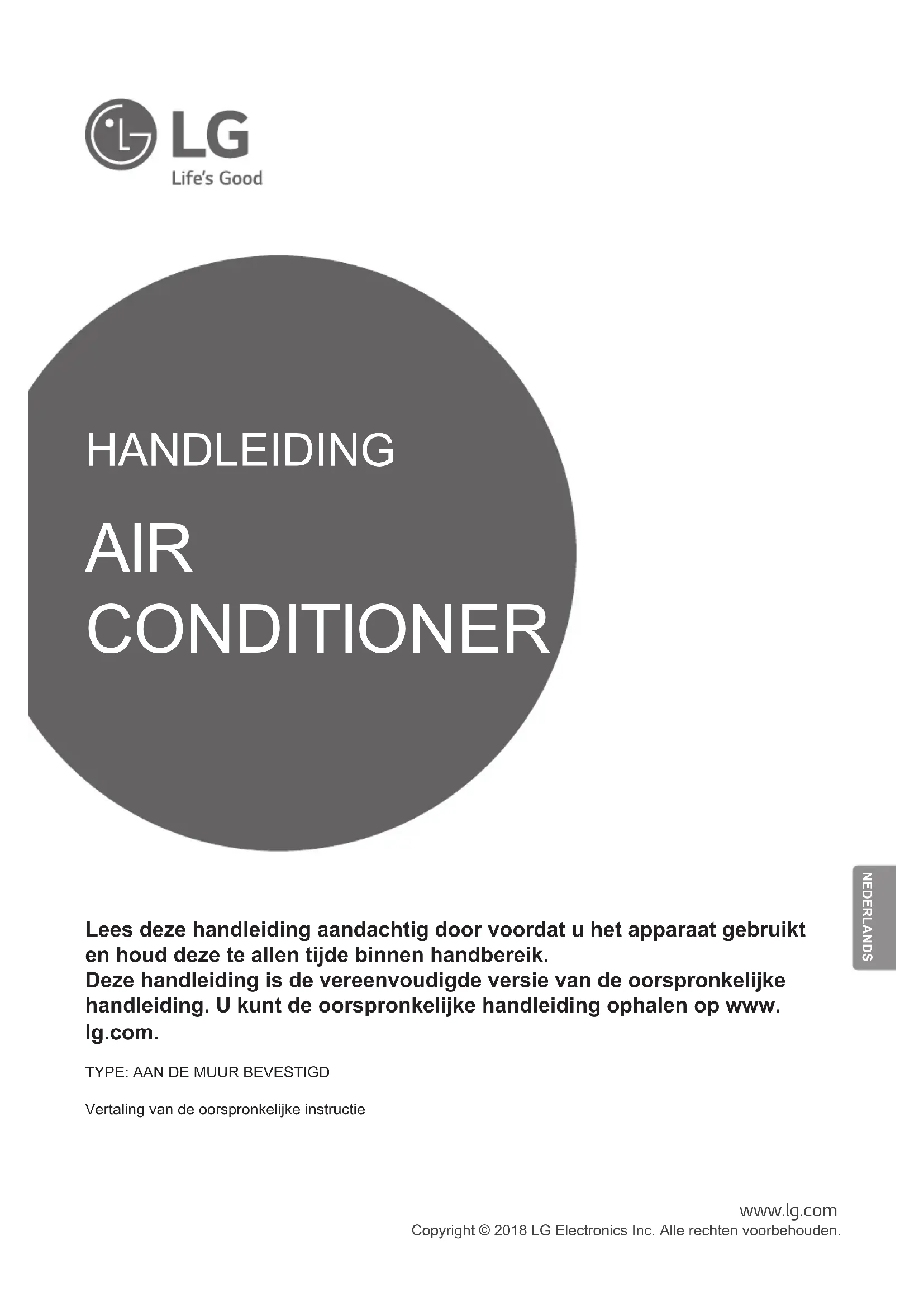 - *os botões podem ser alterados de acordo com o tipo de modelo.NEDERLANDS HANDLEIDING AIR CONDITIONER Lees deze handleiding aandachtig door voordat u het apparaat gebruikt en houd deze te allen tijde binnen handbereik. Deze handleiding is de vereenvoudigde versie van de oorspronkelijke handleiding. U kunt de oorspronkelijke handleiding ophalen op www. lg.com.