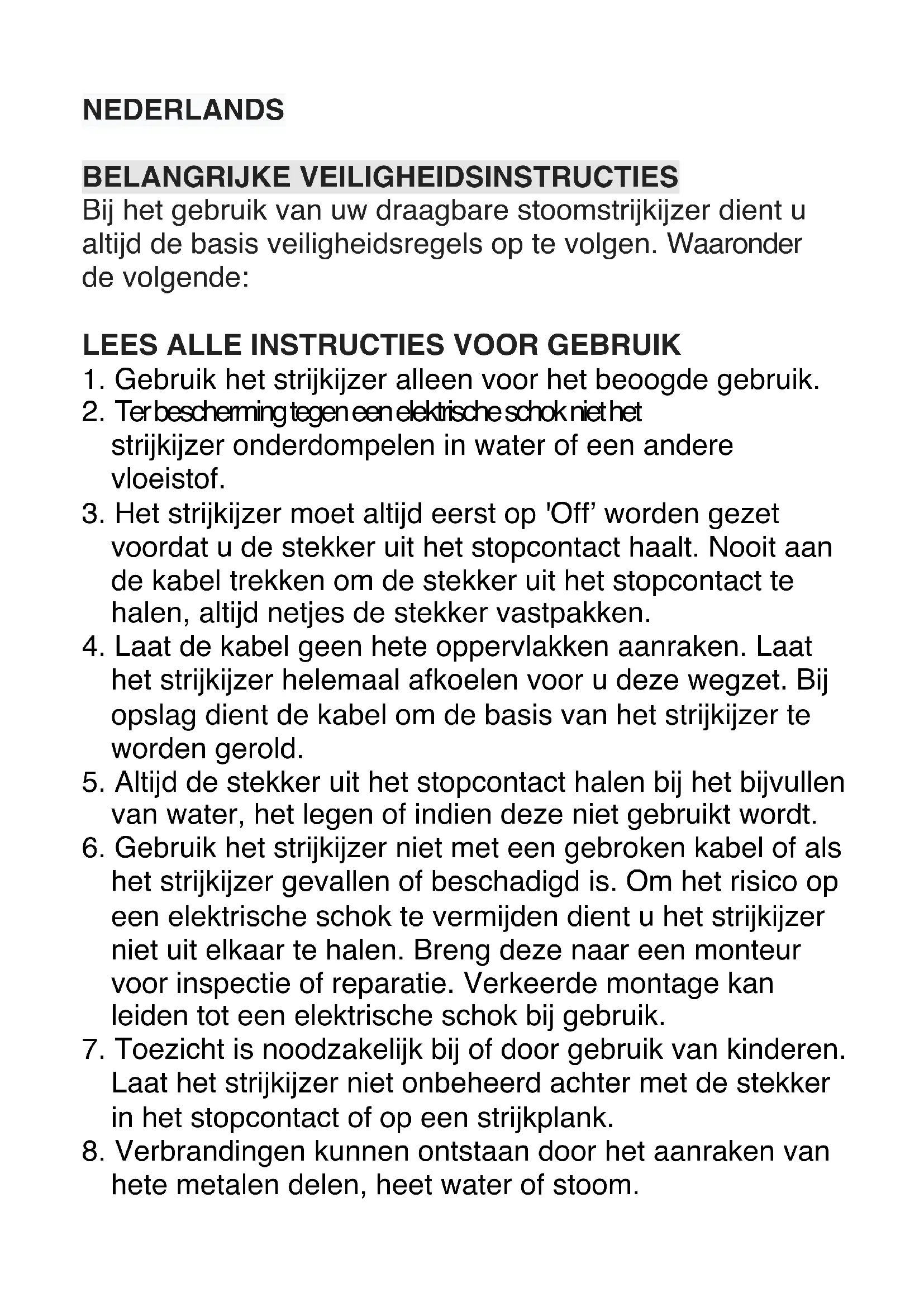 1. Gebruik het strijkijzer alleen voor het beoogde gebruik.