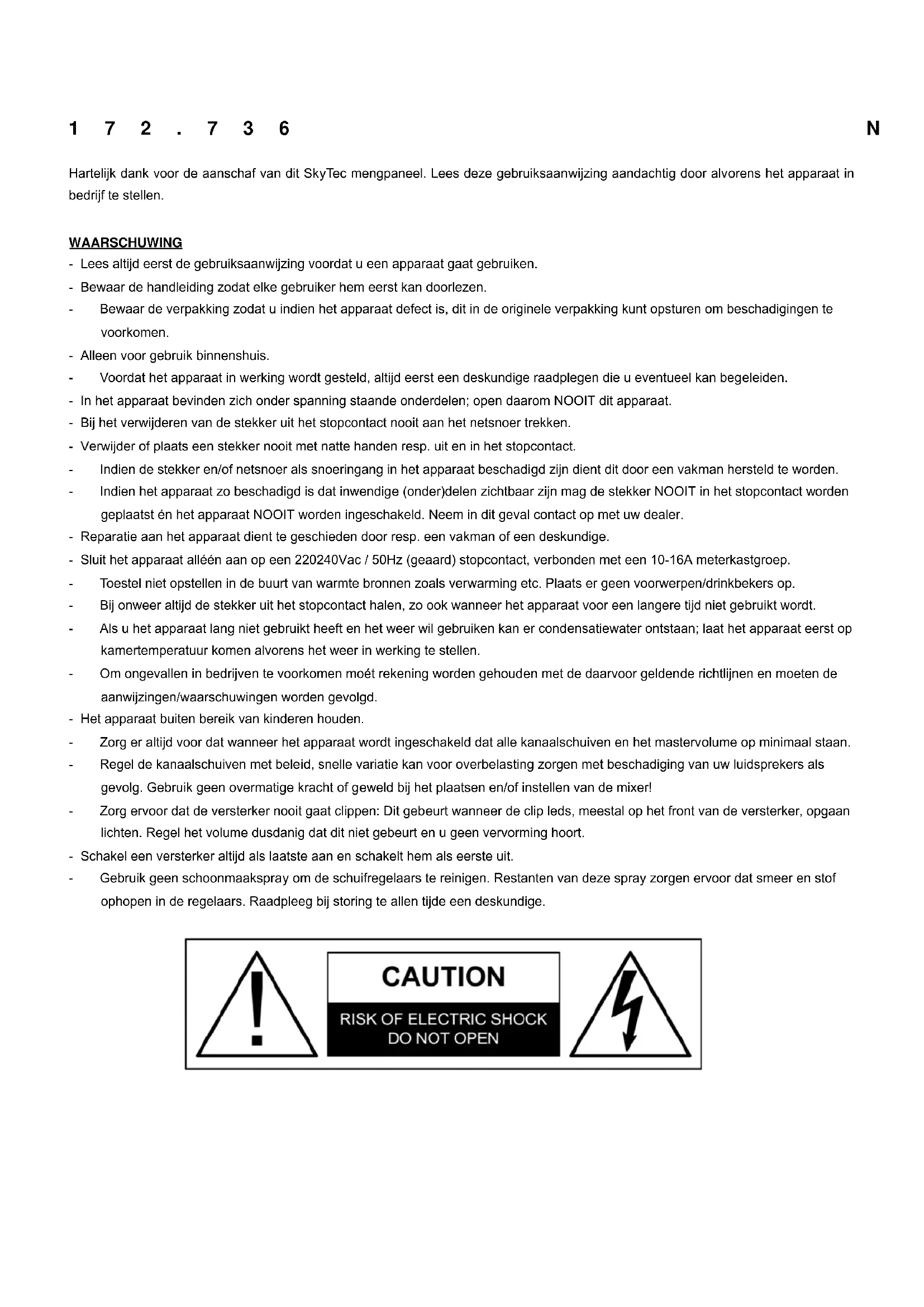 Hartelijk dank voor de aanschaf van dit SkyTec mengpaneel. Lees deze gebruiksaanwijzing aandachtig door alvorens het apparaat in bedrijf te stellen.