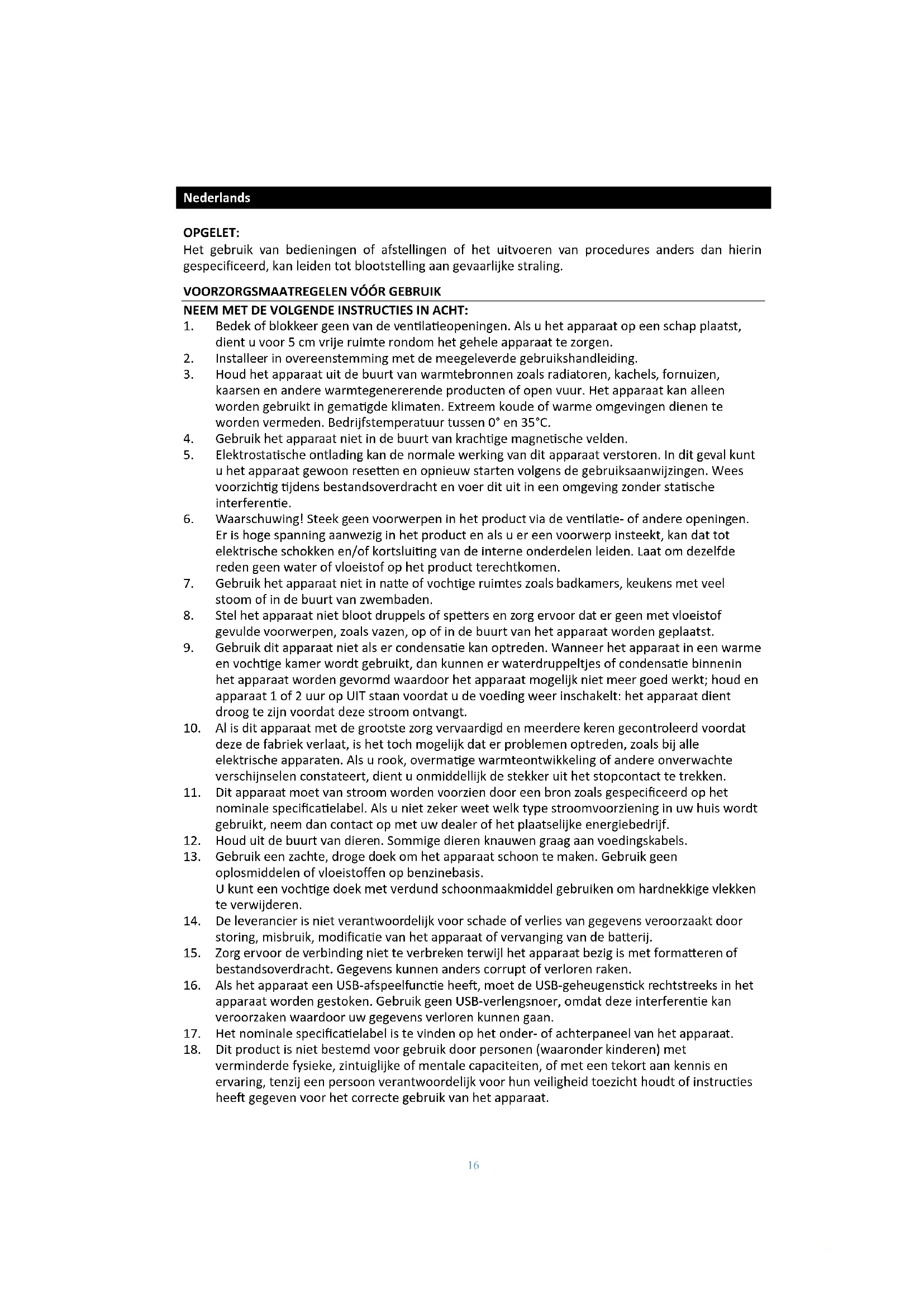 18. Dit product is niet bestemd voor gebruik door personen (waaronder kinderen) met