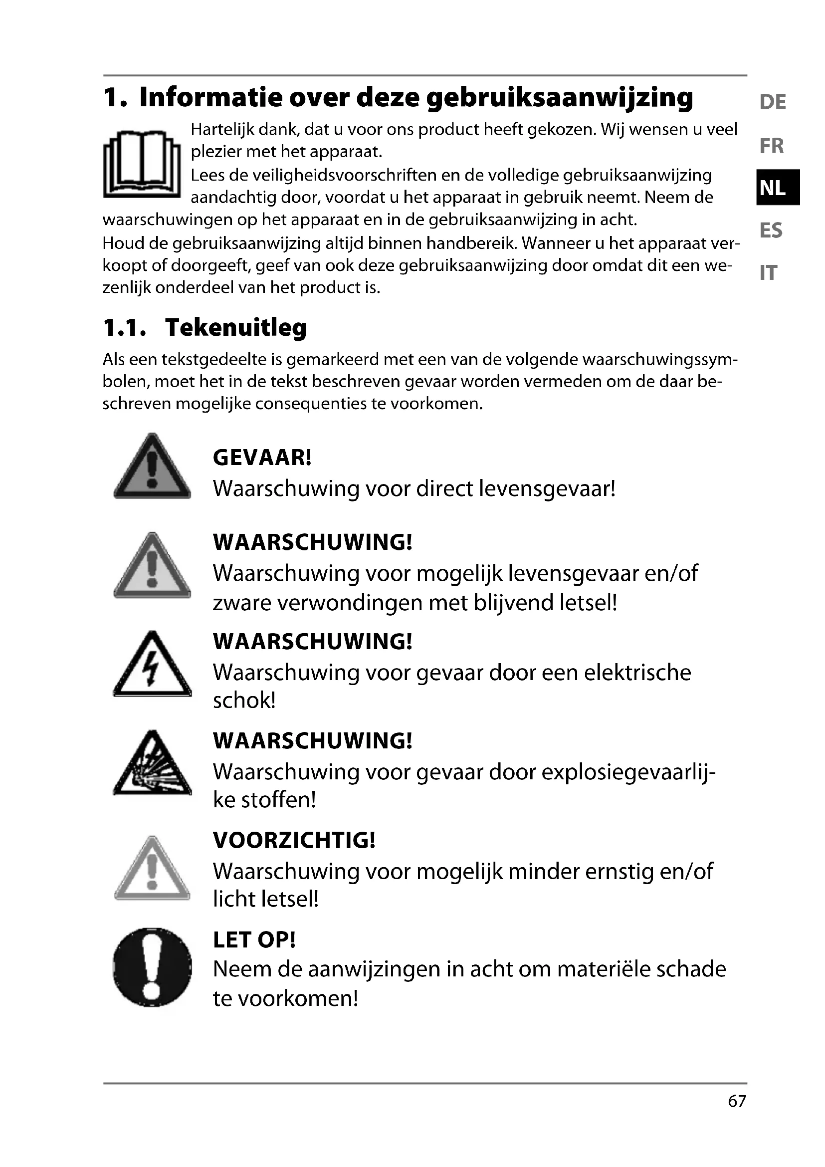 1. Informatie over deze gebruiksaanwijzing