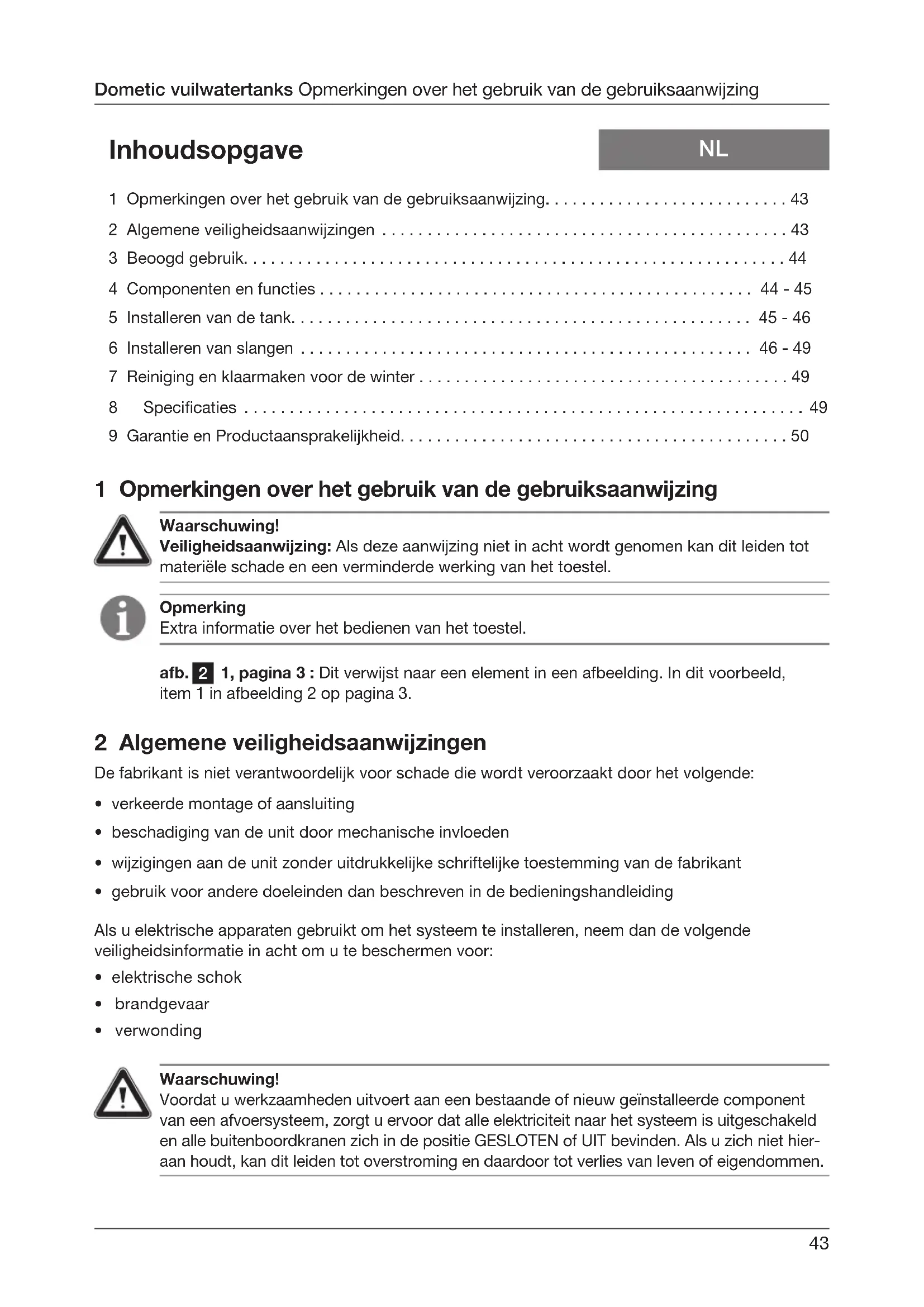 - Inhoudsopgave 1 Opmerkingen over het gebruik van de gebruiksaanwijzing p. 43