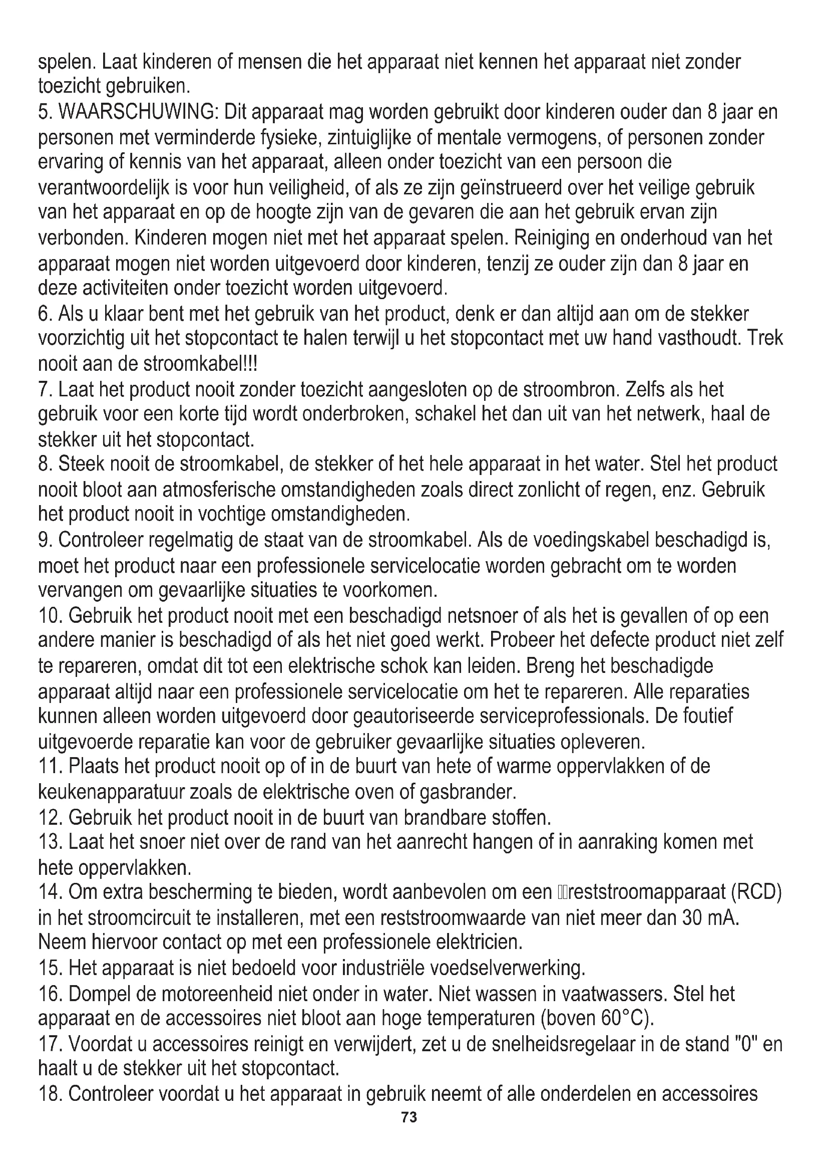 15. Het apparaat is niet bedoeld voor industriële voedselverwerking.