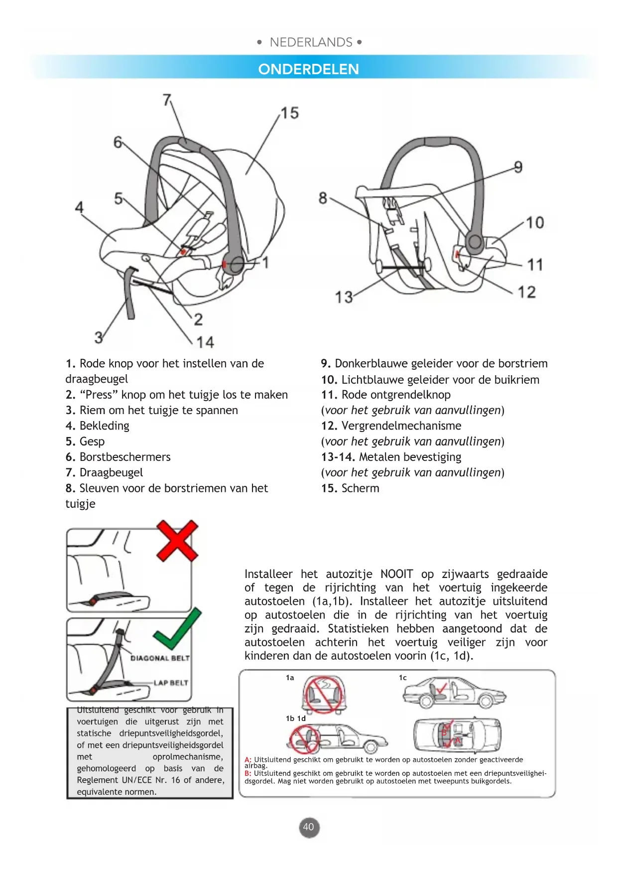 - Wij garanderen de veiligheid van het product wanneer dit gebruikt wordt door de eerste aankoper, gebruik geen kinderzitjes of veiligheidsvoorzieningen die reeds gebruikt zijn.