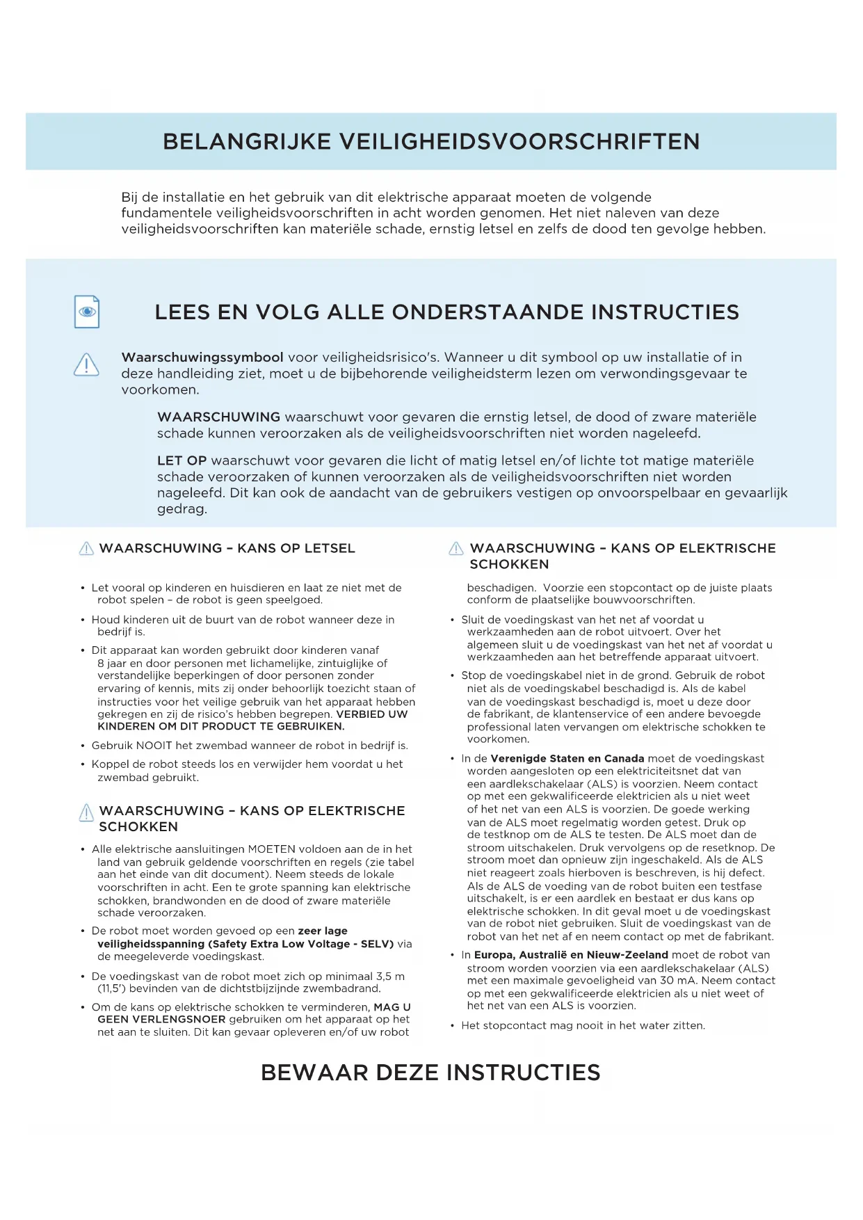 - Gebruik NOOIT het zwembad wanneer de robot in bedrijf is.