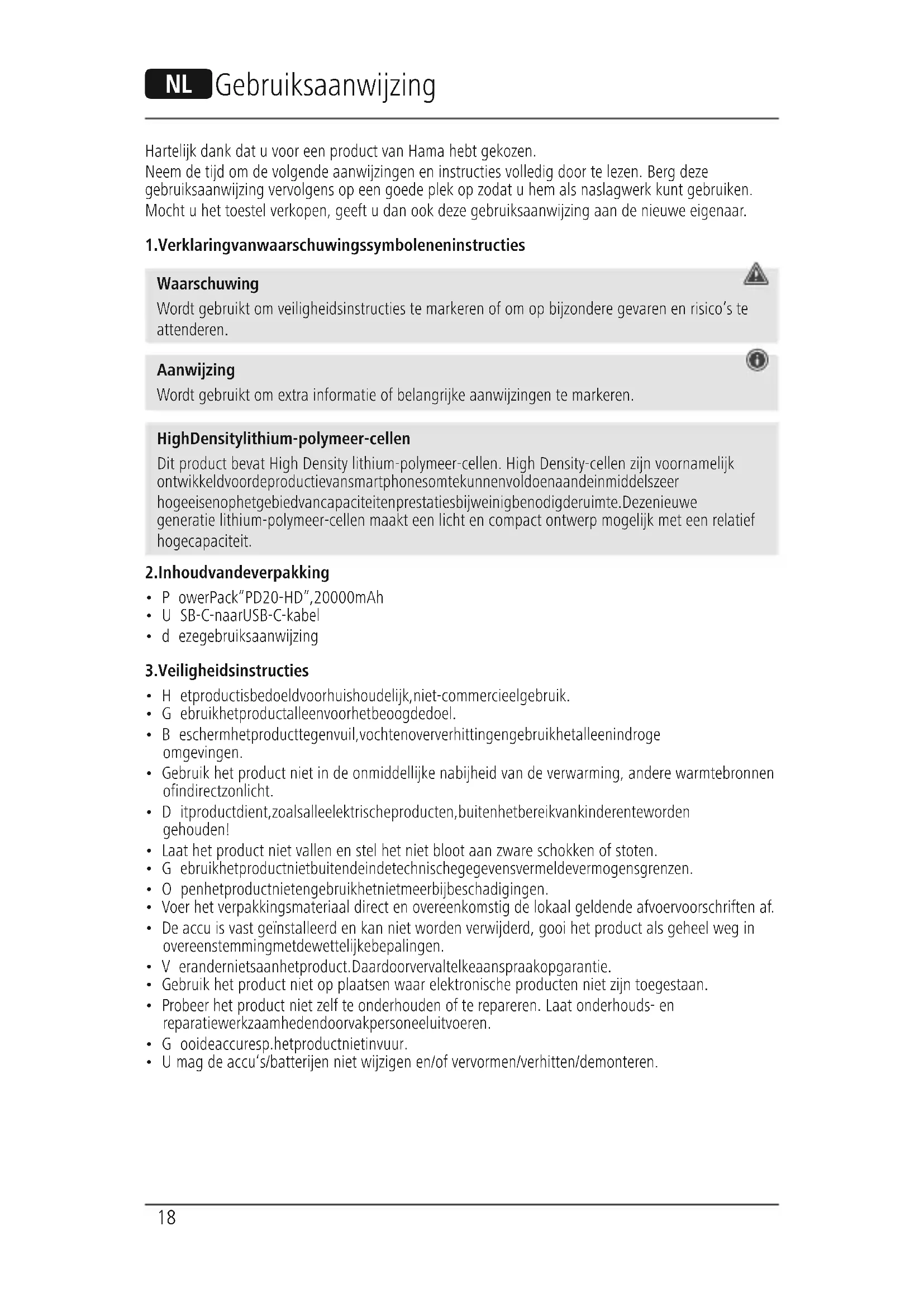 GEBRUIKSAANWIJZING PD20HD HAMA
