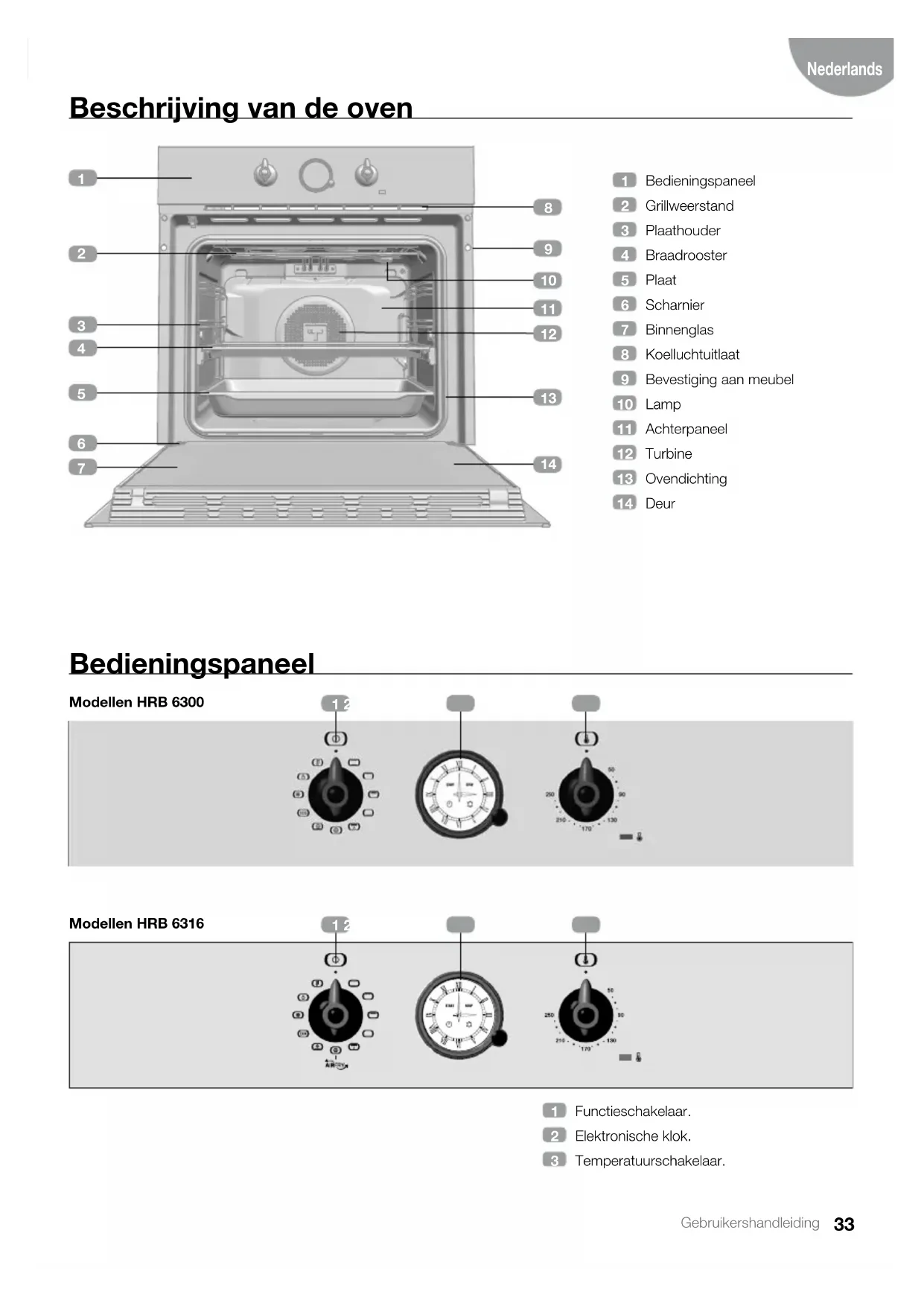 unteren Teil der Backofenröhre.33 Gebruikershandleiding Nederlands Beschrijving van de oven Bedieningspaneel