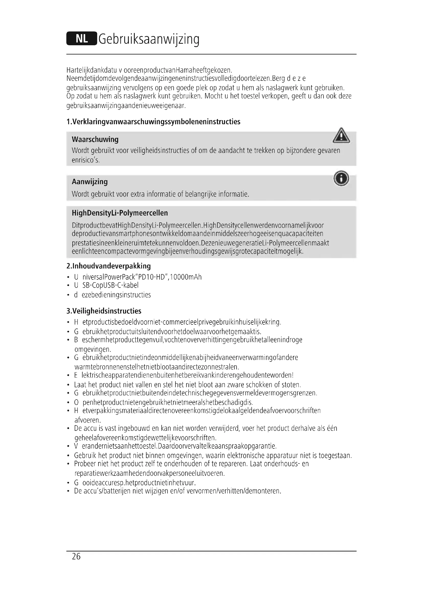 Waarschuwing Wordtgebruikt voor veiligheidsinstructies of om de aandacht te trekken op bijzonderegevaren en risico‘s. Aanwijzing Wordtgebruikt voor extrainformatie of belangrijke informatie. High Density Li-Polymeer cellen Dit product bevat High Density Li-Polymeer cellen. High Density cellen werden voornamelijk voor de productie van smartphones ontwikkeld om aan de inmiddels zeer hoge eisen qua capaciteit en prestaties in een kleine ruimte te kunnen voldoen. Deze nieuwe generatie Li-Polymeer cellen maakt een lichte en compacte vormgeving bij een verhoudingsgewijs grote capaciteit mogelijk.