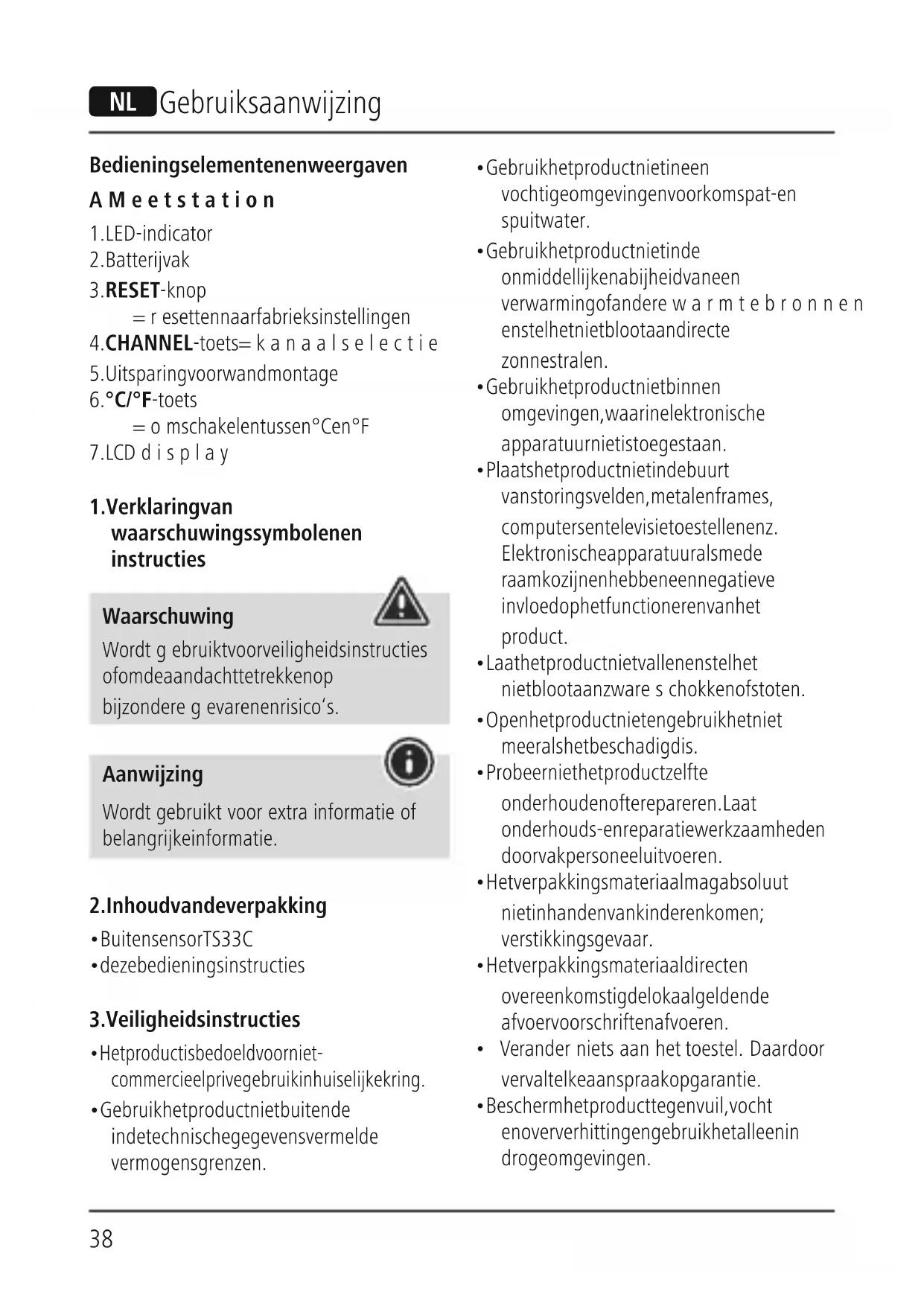 - Let er bij de montage van het meetstation op dat dit tegen direct zonlicht en regen beschermd is gepositioneerd. Aanwijzing
